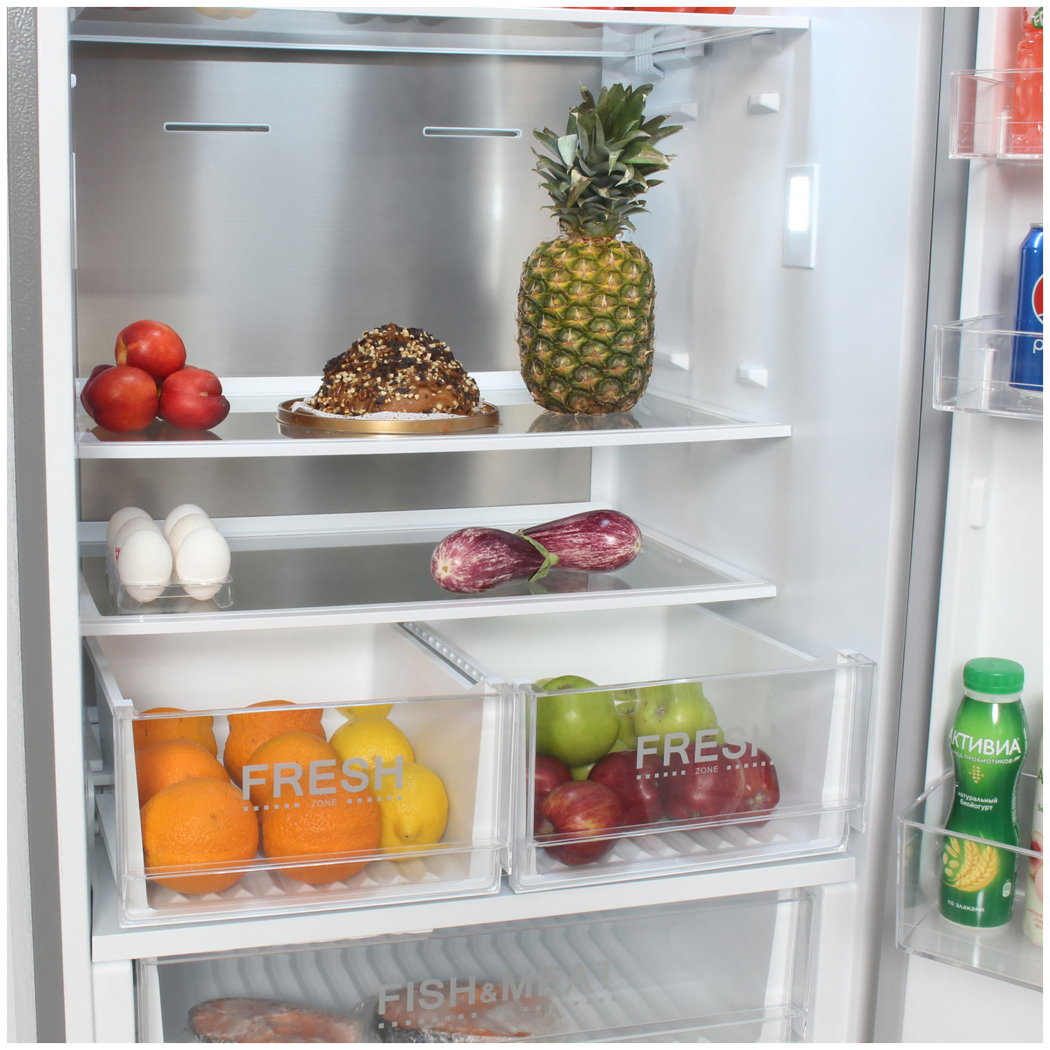 Описаниехолодильник-морозильник отдельностоящий, 416 л, класс энергопотребления А+, No Frost, 70х66,6х188 см, нержавеющая сталь