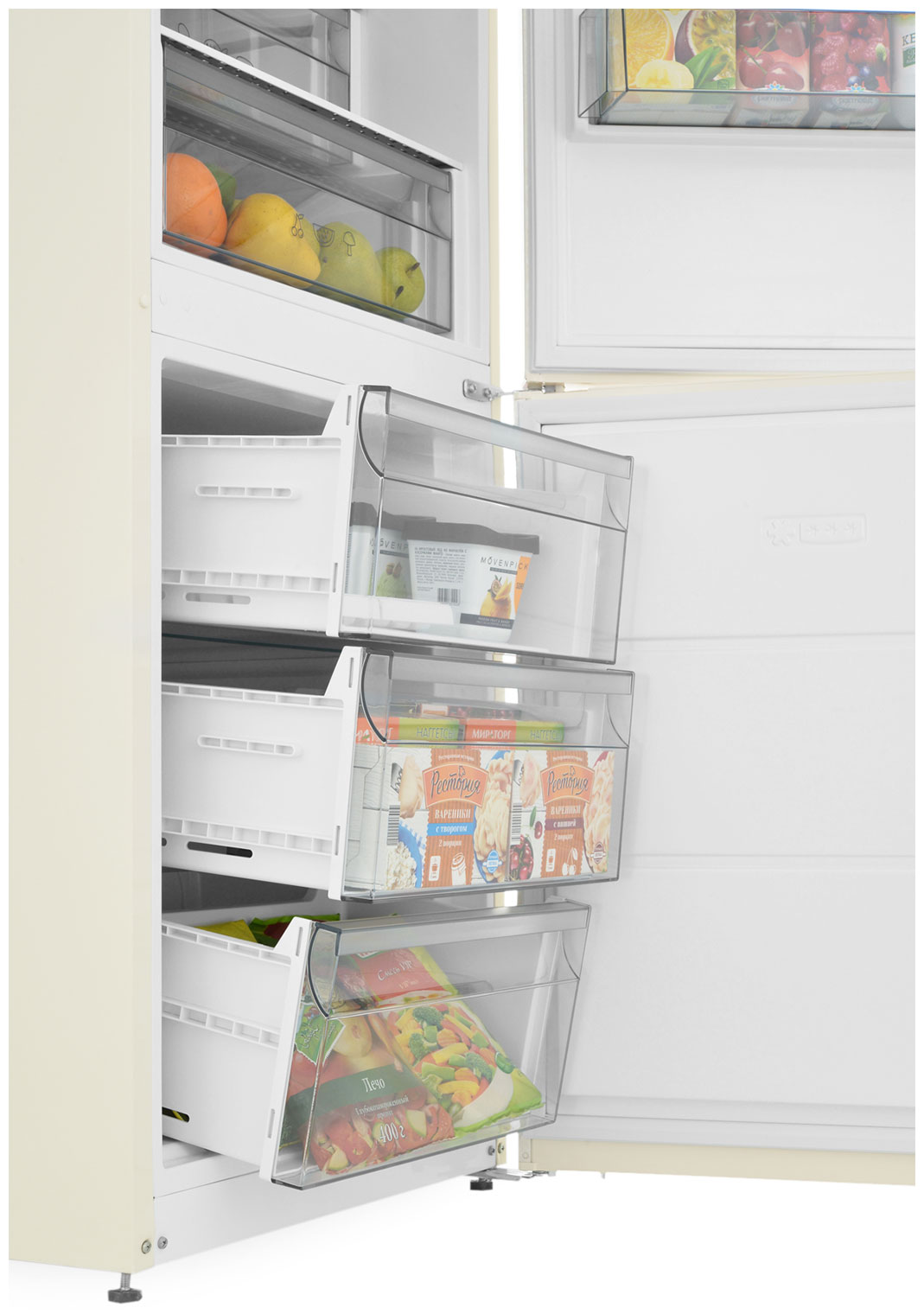 Описаниехолодильник-морозильник отдельностоящий, 360 л, класс энергосбережения А++, No Frost, 59,5х65х201 см, мраморно-бежевый
