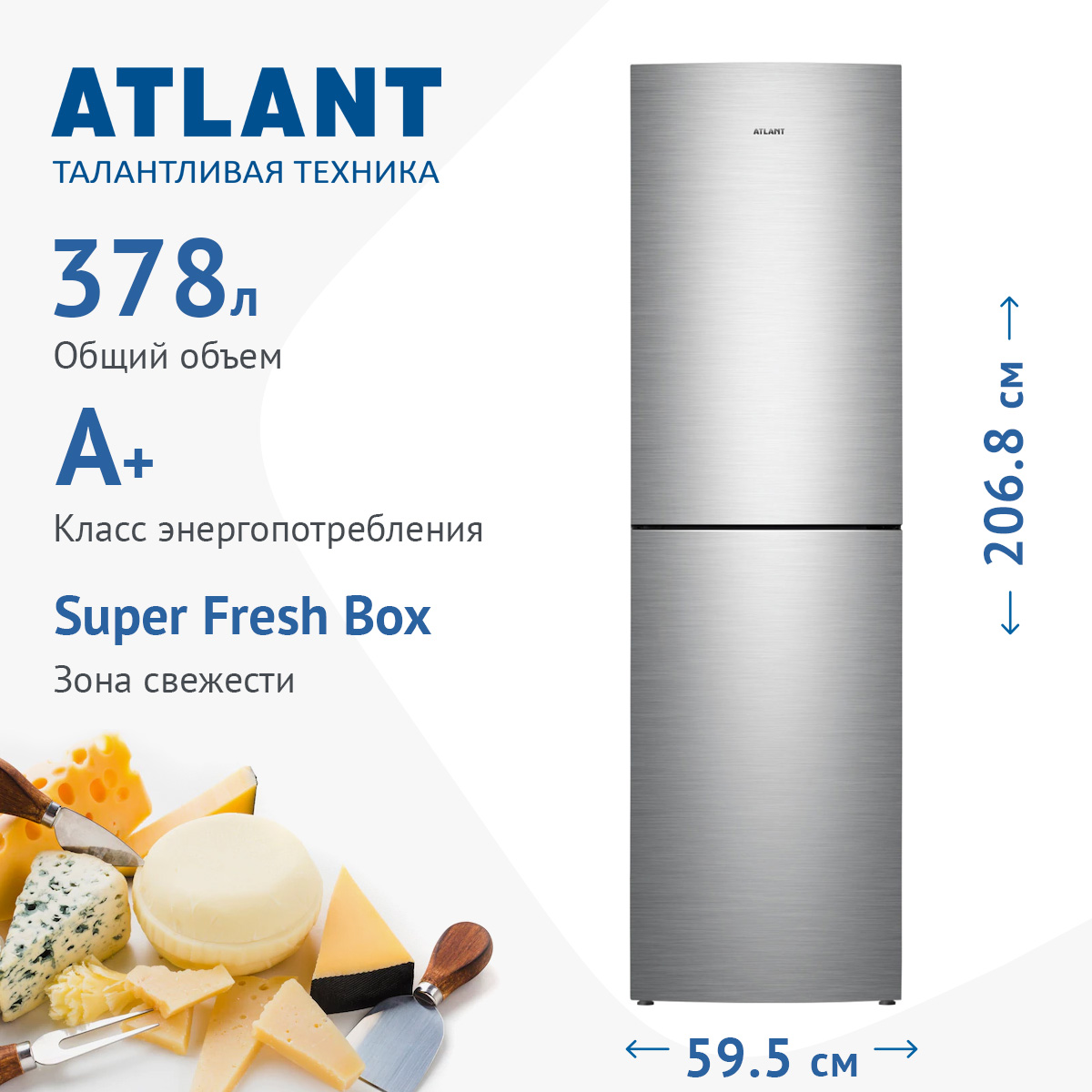 Описаниехолодильник-морозильник отдельностоящий 206,8x59,5x62,9см,серебр.,2-камерный,нижн.мороз-4ящика,1компрессор,378л,класс А+,серия ADVANCED + зона свежести.