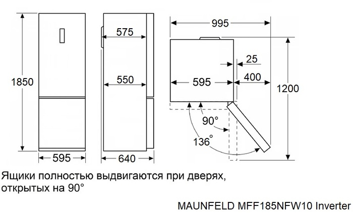 Maunfeld MFF185NFХ10 Inverter Двухкамерный холодильник отдельностоящий
