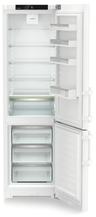 Возможность перевешивания двери есть Количество дверей 2 Количество камер 2 Мощность замораживания до 16 кг/cутки Общий объем 360 л Объем морозильной камеры 94 л Размер (Высота) 201,5 см Размер (Глубина) 67,5 см Размер (Ширина) 59,7 см Размораживание морозильной камеры No Frost Тип установки отдельностоящий Цвет белый Класс энергопотребления класс A++ Ширина прибора 51 - 60 см Высота прибора 201 - 205 см Управление сенсорное Гарантийный срок (месяцы) 60 Страна производитель Болгария Ссылка на сайт производителя https://www.liebherr.com/ru-ru/p/cnc-5713-3046259#3210 Максимальный уровень шума 37 дБ Тип холодильник с морозильником Внутреннее освещение есть Зона свежести есть Объем холодильной камеры 266 л Размораживание холодильной камеры капельная система Расположение морозильной камеры снизу Генератор льда нет Размер в упаковке (Высота) 208,7 см Размер в упаковке (Ширина) 62,3 см Размер в упаковке (Глубина) 77,2 см Вес прибора 75,5 кг Полка для бутылок нет Количество контейнеров в морозильной камере 3 Размер (Ширина), см 59,7 Размер (Высота), см (Общие) 201,5 Размер (Глубина), см 67,5 - Отзывы