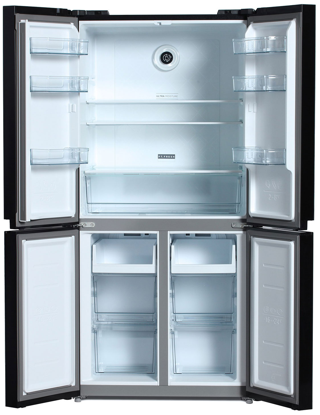 Количество дверей 4 Количество камер 3 Общий объем 456 л Объем морозильной камеры 153 л Размер (Высота) 177,5 см Размер (Глубина) 65,5 см Размер (Ширина) 83,3 см Размораживание морозильной камеры No Frost Тип установки отдельностоящий Цвет черное стекло Класс энергопотребления класс A Ширина прибора 81 - 90 см Высота прибора 176 - 180 см Управление сенсорное Гарантийный срок (месяцы) 24 Страна производитель Китай Ссылка на сайт производителя https://hyundai-electronics.com.ru/catalog/item/1196047 Максимальный уровень шума 42 дБ Тип холодильник с морозильником Внутреннее освещение есть Зона свежести есть Объем холодильной камеры 303 л Размораживание холодильной камеры No Frost Расположение морозильной камеры снизу Размер (Ширина), см 83,3 Размер (Высота), см (Общие) 177,5 Размер (Глубина), см 65,5 - Отзывы