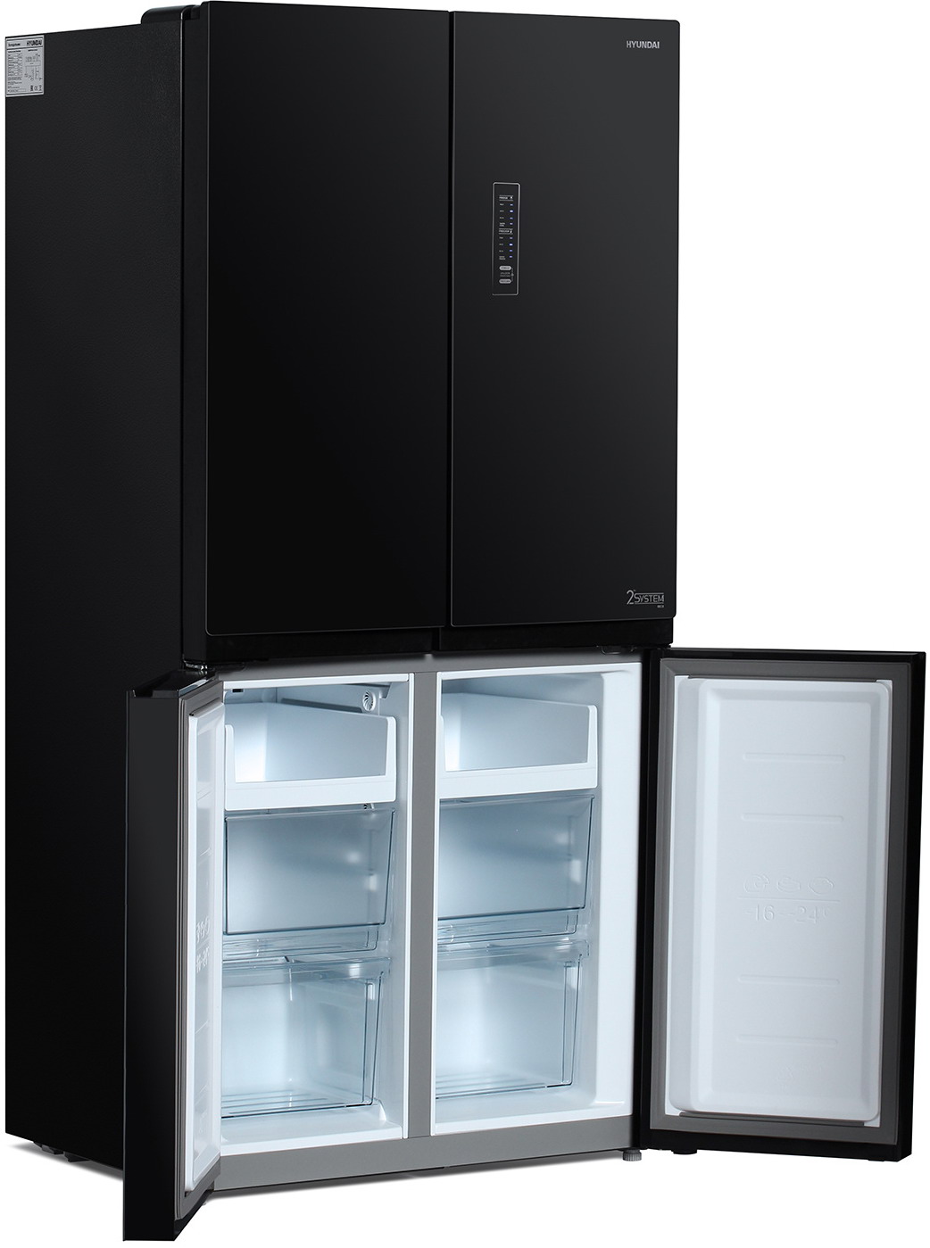 Hyundai CM5005F черное стекло Холодильник Side-by-Side отдельностоящий