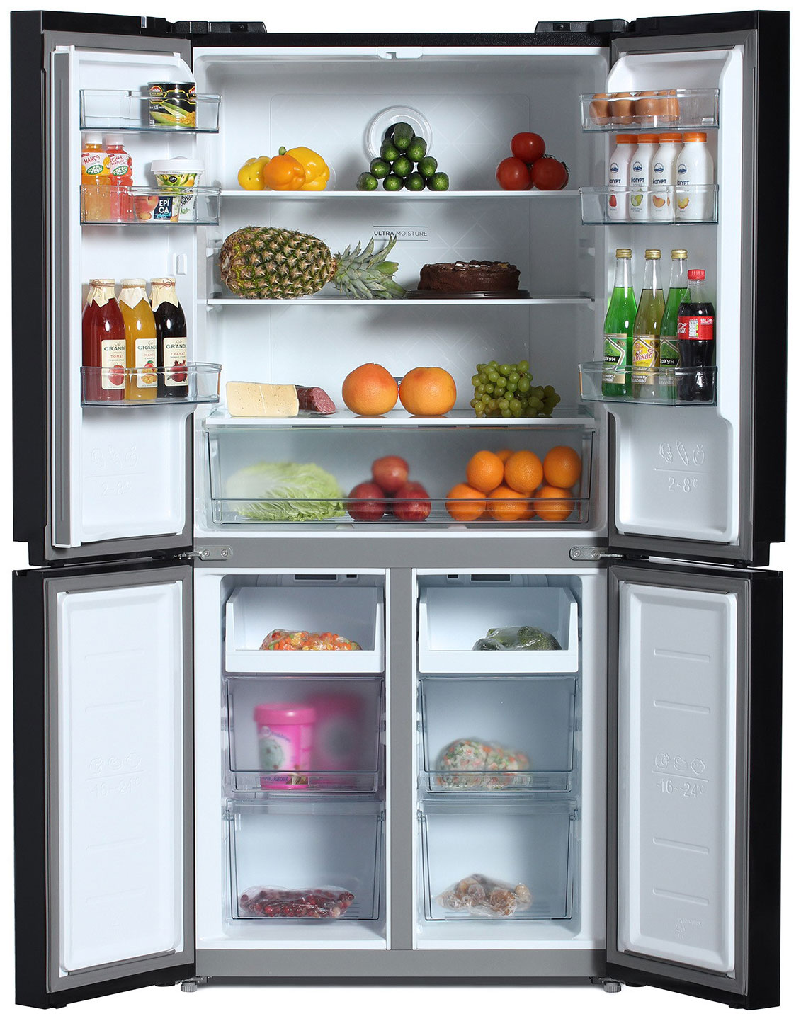 Описаниехолодильник-морозильник Side-by-Side отдельностоящий, 456 л, класс энергопотребления А+, No Frost, 83,3х65,5х178 см, черное стекло