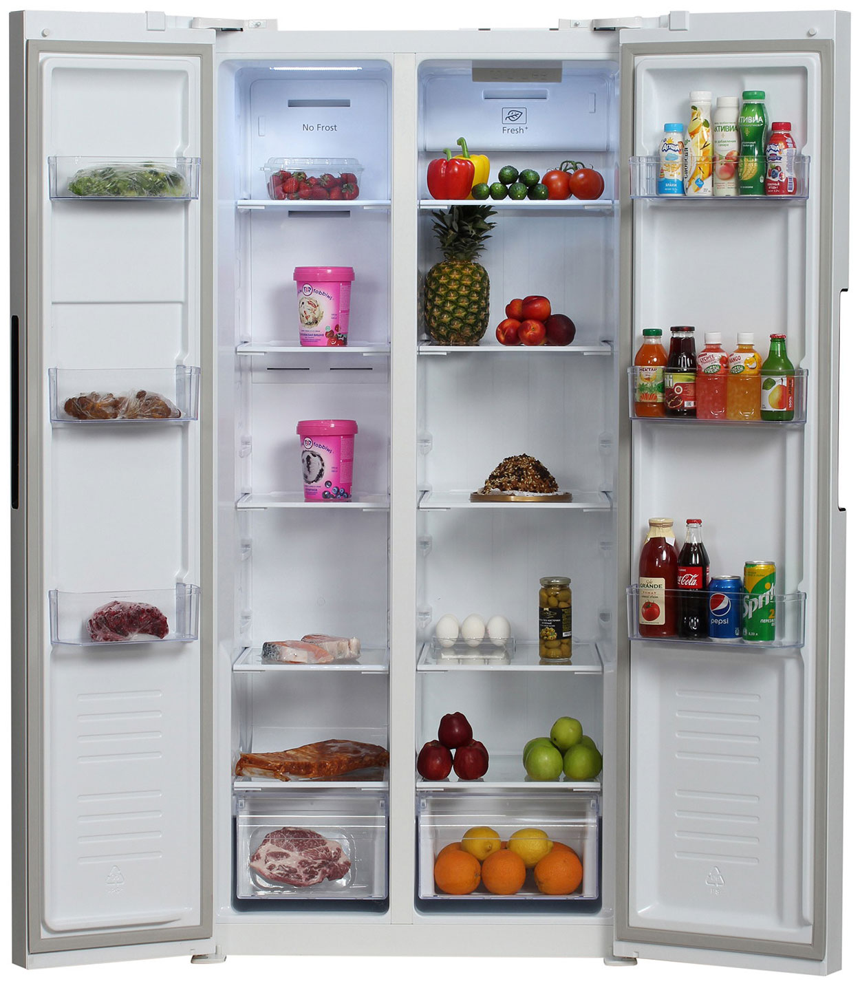 Описаниехолодильник-морозильник Side-by-Side отдельностоящий, 436 л, класс энергопотребления А+, No Frost, 83,6х63,6х178 см, белый