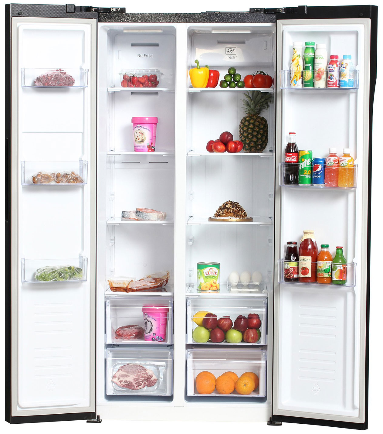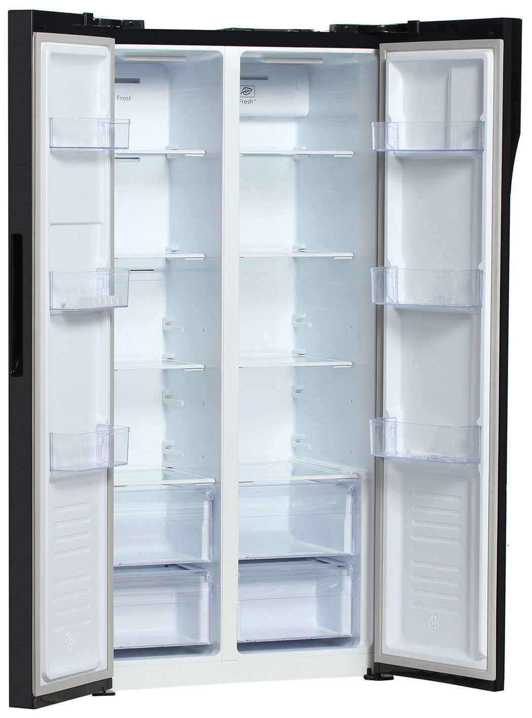 Описаниехолодильник-морозильник Side-by-Side отдельностоящий, 436 л, класс энергопотребления А+, No Frost, 83,6х63,6х178 см, черная сталь