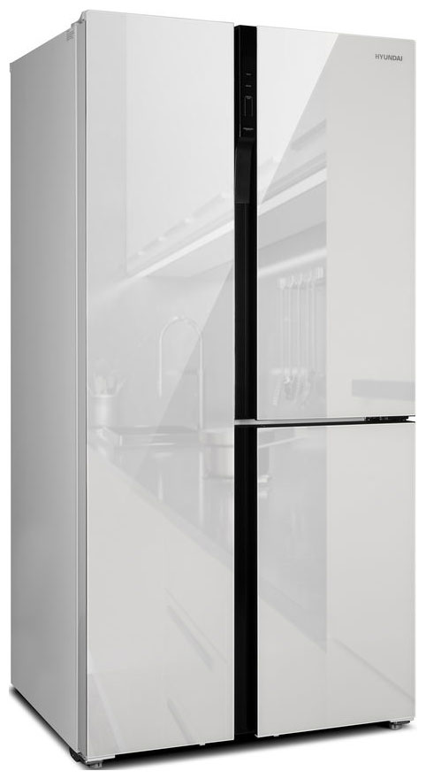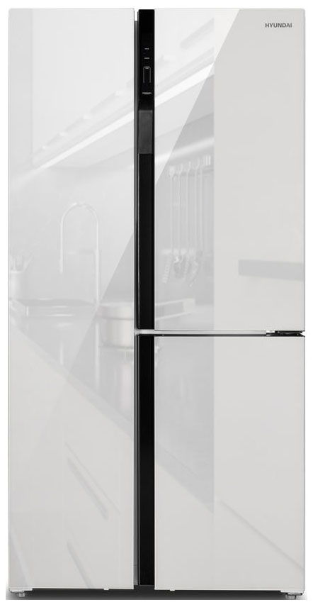 Hyundai CS6073FV белое стекло Холодильник Side-by-Side отдельностоящий