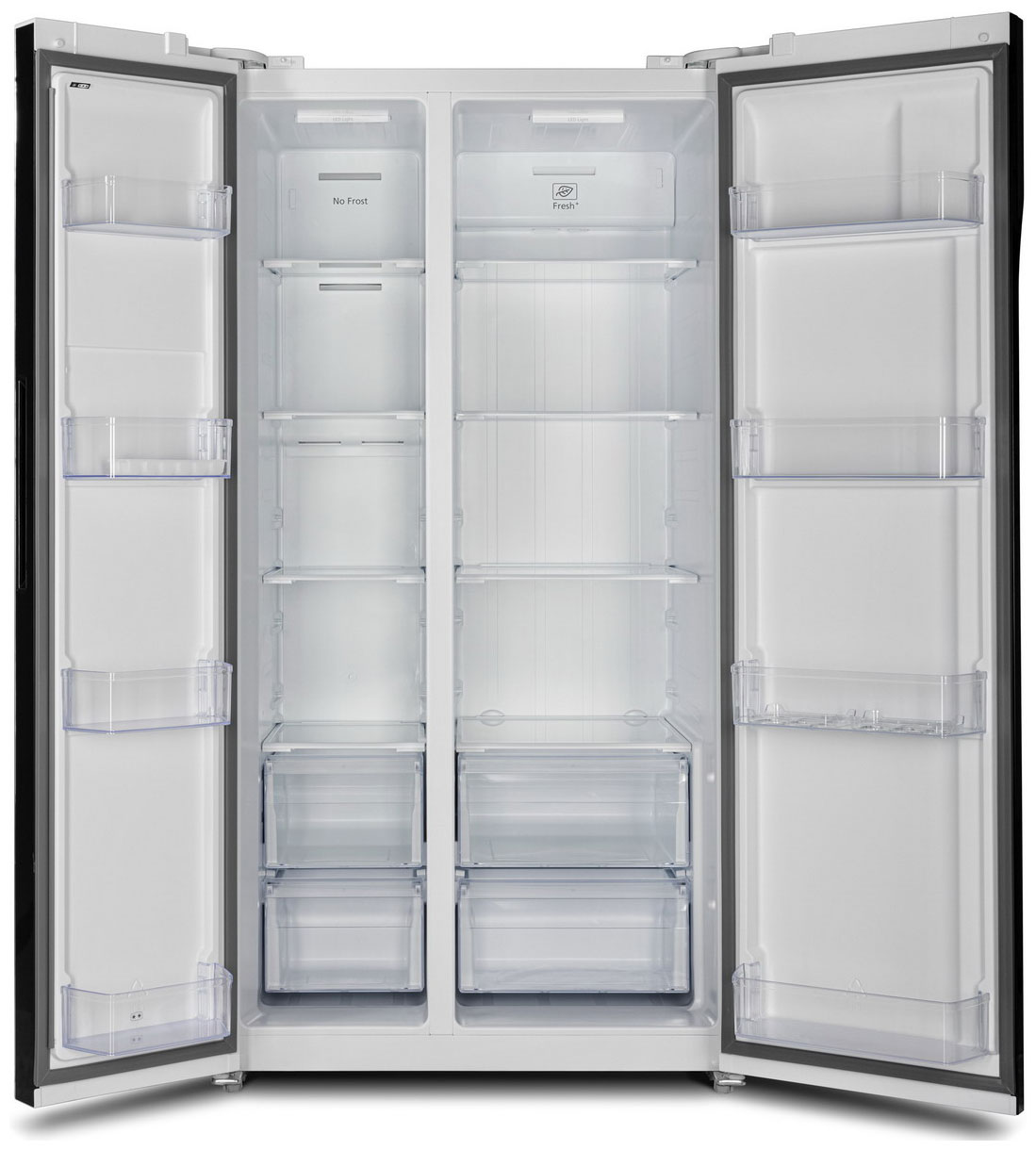 Описаниехолодильник-морозильник Side-by-Side отдельностоящий, 612 л, класс энергопотребления А++, No Frost, 91,1х74,6х178 см, белое стекло