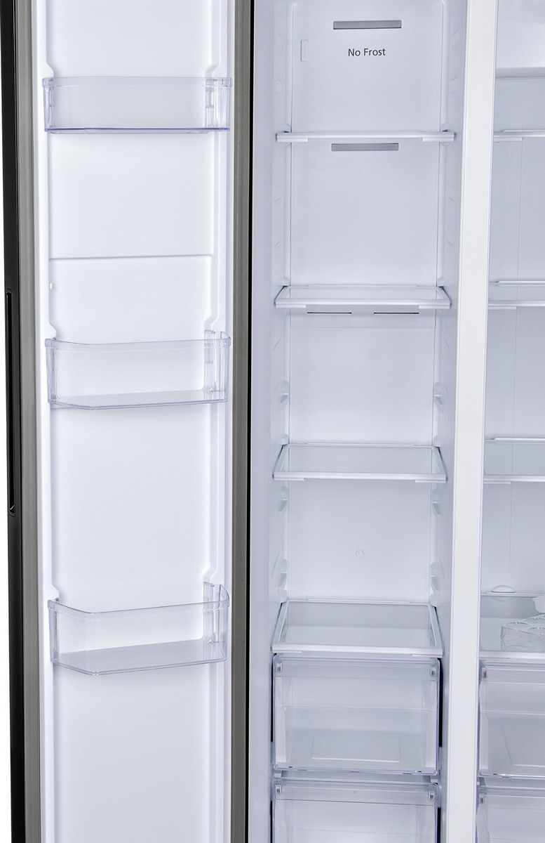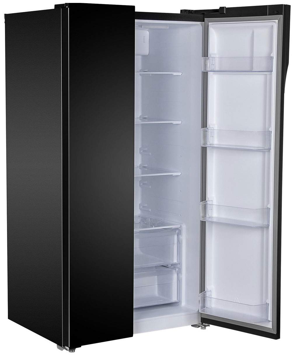 Описаниехолодильник-морозильник Side-by-Side отдельностоящий, 612 л, класс энергопотребления А++, No Frost, 91,1х74,6х178 см, черное стекло