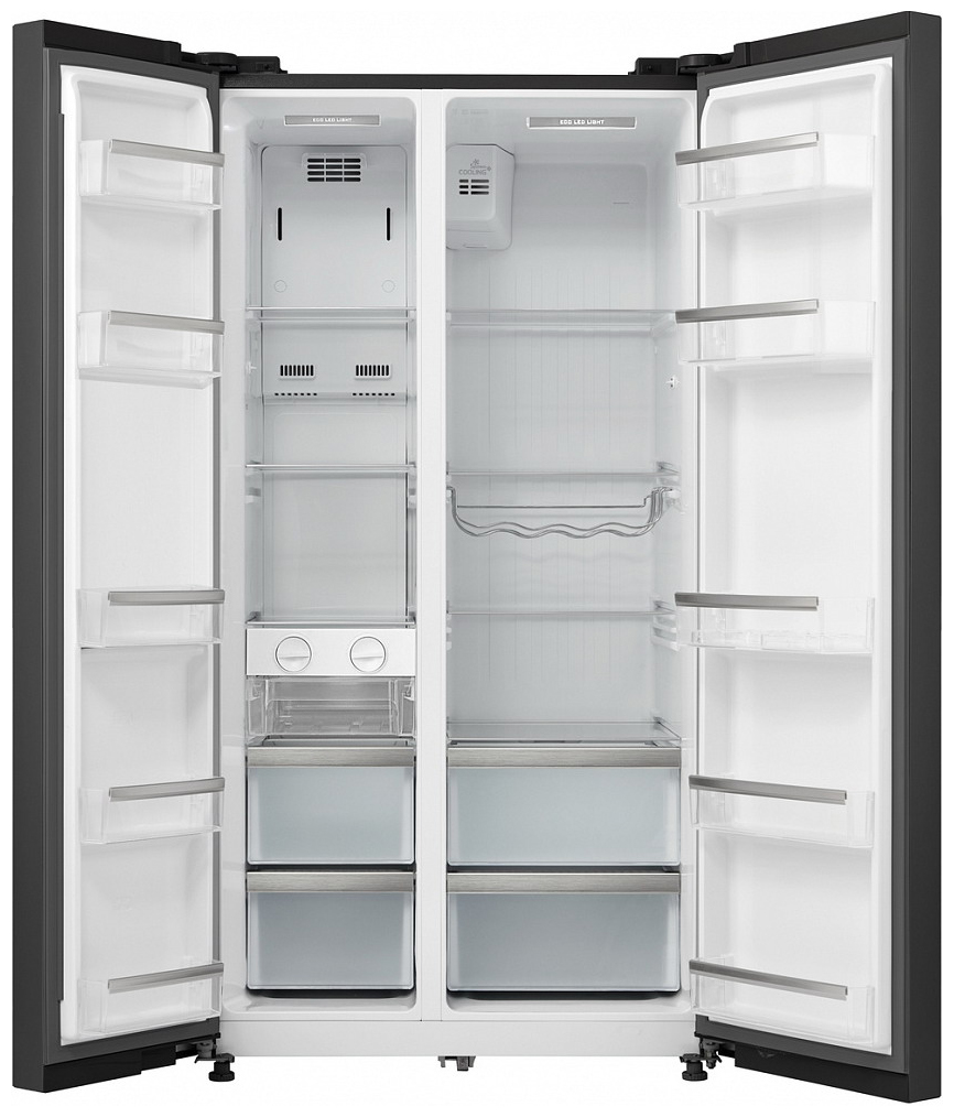 Описаниехолодильник-морозильник Side-by-Side отдельностоящий, 510 л, класс энергопотребления А+, No Frost, 89,5х74,5х178,8 см, черное стекло