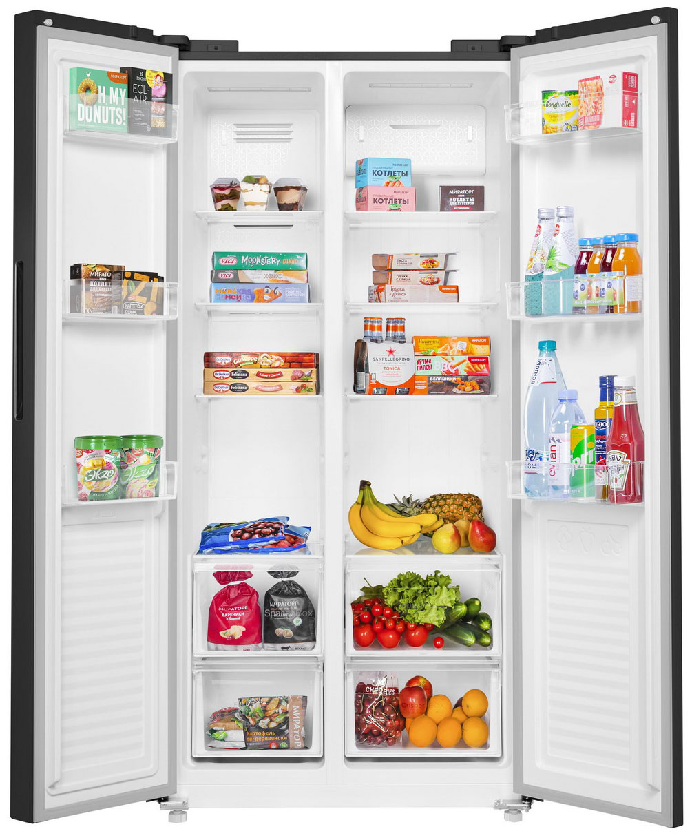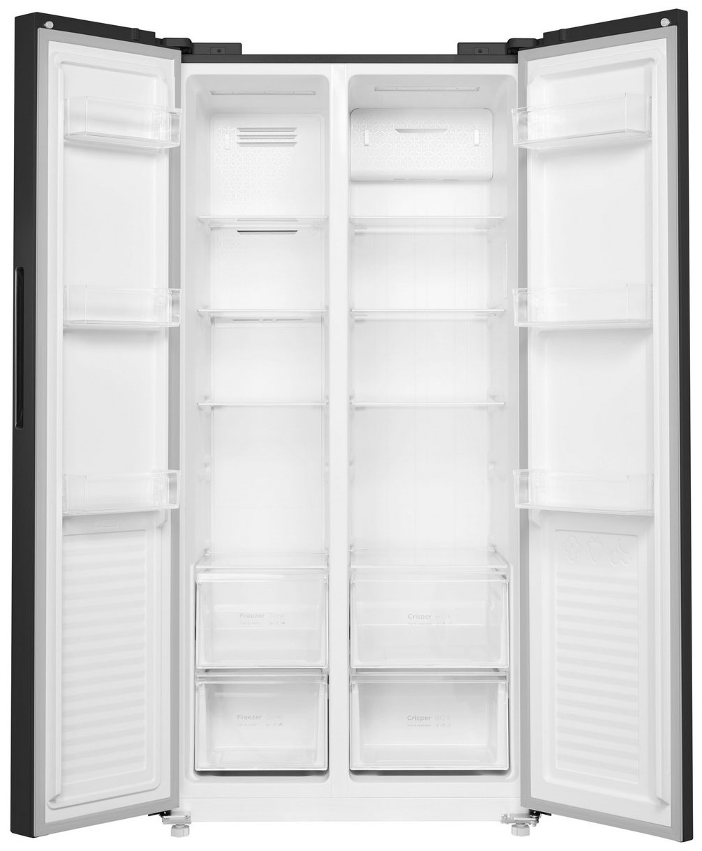 Описаниехолодильник-морозильник Side-by-Side отдельностоящий, 430 л, класс энергопотребления А+, NoFrost, 83,3х63,7х177 см, черный