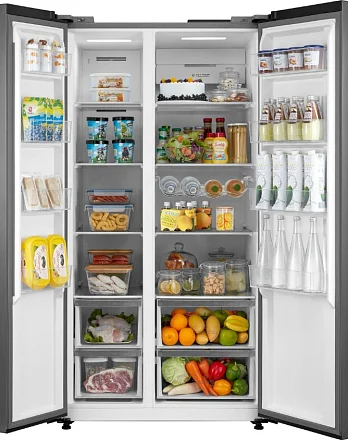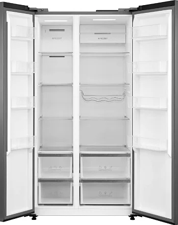 Описаниехолодильник-морозильник Side-by-Side отдельностоящий, 592 л, класс энергопотребления А++, No Frost, 91х69,8х177,5 см, нержавеющая сталь