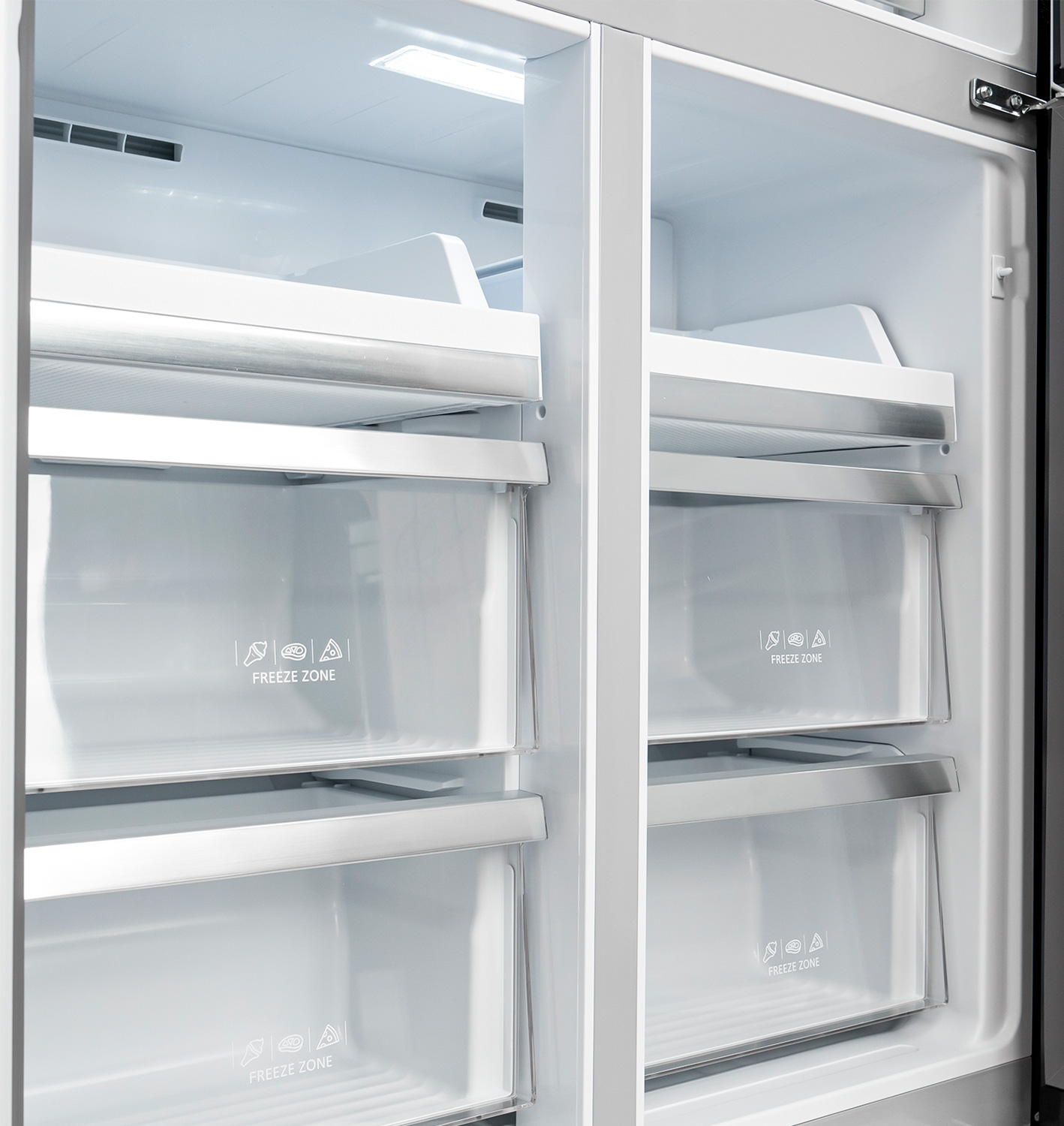 Описаниехолодильник-морозильник Side-by-Side отдельностоящий, 465 л, класс энергопотребления А+, No Frost, 91,1х63,6х183 см, нержавеющая сталь