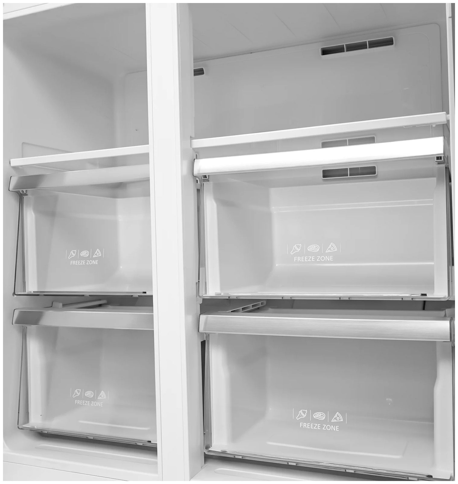 Описаниехолодильник-морозильник Side-by-Side отдельностоящий, 417 л, класс энергопотребления А+,No Frost, 83,6х63,6х183 см, серый глянец