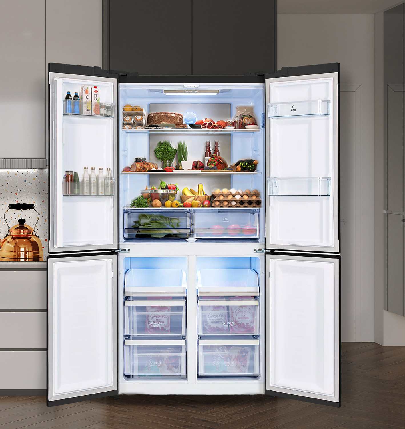 Возможность перевешивания двери нет Количество дверей 4 Количество камер 2 Мощность замораживания до 12 кг/cутки Общий объем 465 л Объем морозильной камеры 144 л Размер (Высота) 183 см Размер (Глубина) 63,6 см Размер (Ширина) 91,1 см Размораживание морозильной камеры No Frost Тип установки отдельностоящий Цвет черное стекло Класс энергопотребления класс A+ Ширина прибора 91 - 121 см Высота прибора 181 - 185 см Управление электронное Гарантийный срок (месяцы) 36,6 Страна производитель Китай Ссылка на сайт производителя https://lex1.ru/shop/holodilniki/side-by-side/lex-lsb505blgid Максимальный уровень шума 42 дБ Тип холодильник с морозильником Внутреннее освещение есть Зона свежести есть Объем холодильной камеры 321 л Размораживание холодильной камеры No Frost Расположение морозильной камеры снизу Размер в упаковке (Высота) 189,5 см Размер в упаковке (Ширина) 96,8 см Размер в упаковке (Глубина) 68 см Вес прибора 100 кг Тип компрессора инверторный Полка для бутылок есть Количество контейнеров в морозильной камере 4 Размер (Ширина), см 91,1 Размер (Высота), см (Общие) 183 Размер (Глубина), см 63,6 - Отзывы