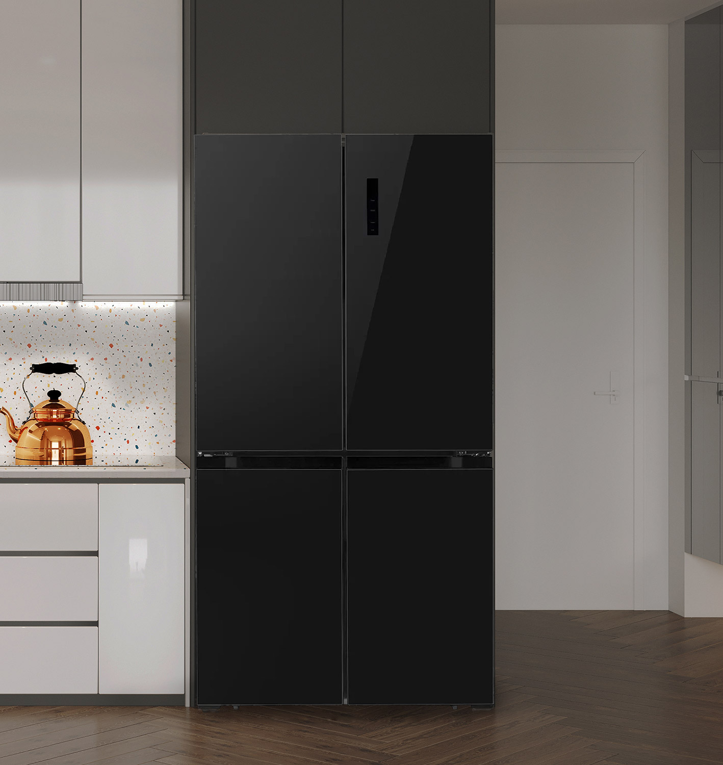 Описаниехолодильник-морозильник Side-by-Side отдельностоящий, 465 л, класс энергопотребления А+,No Frost, 91,1х63,6х183 см, черный/стекло