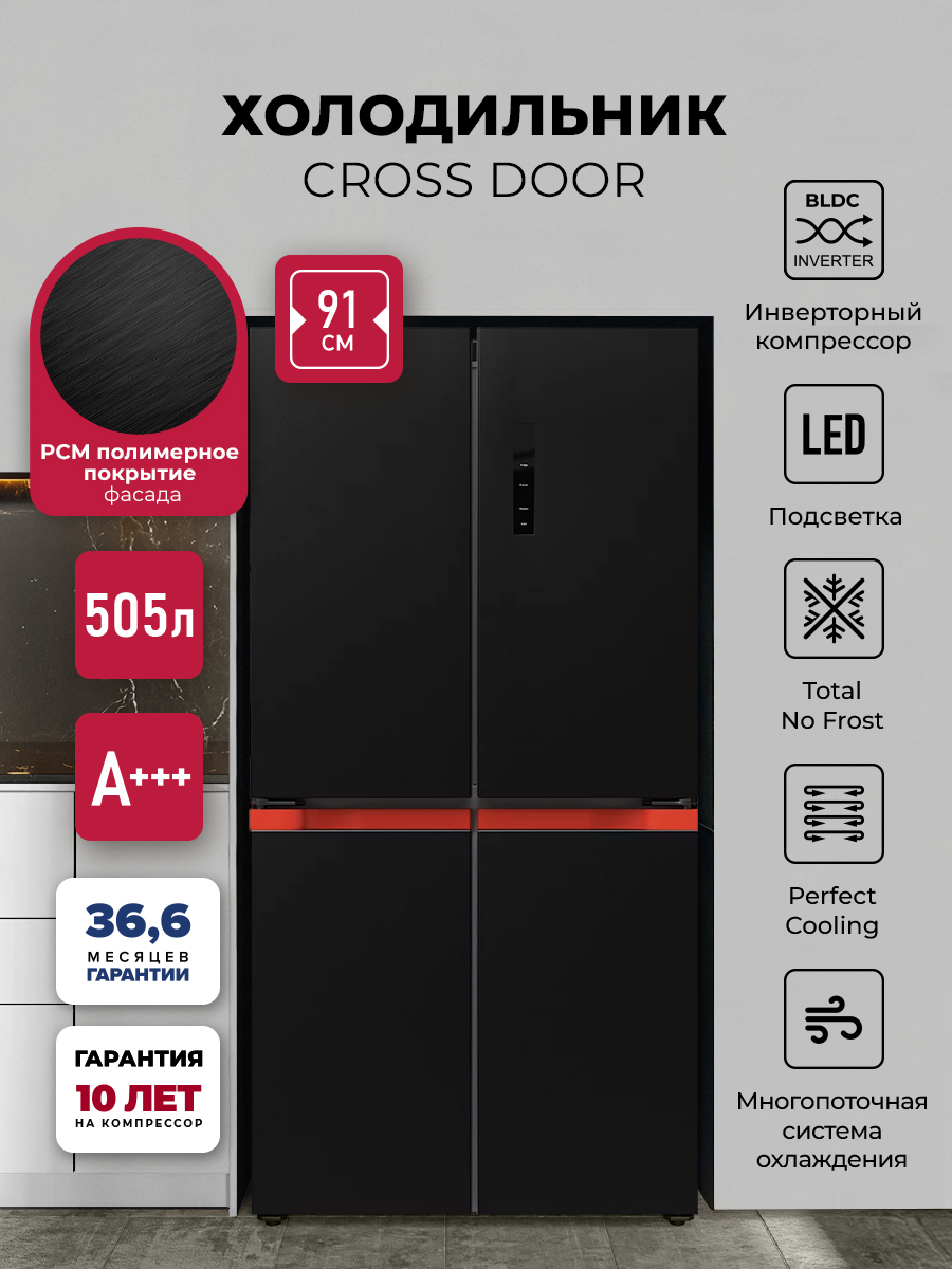 Описаниехолодильник-морозильник Side-by-Side отдельностоящий, 465 л, класс энергопотребления А+, No Frost, 91,1х63,6х183 см, черный с оранжевой полосой