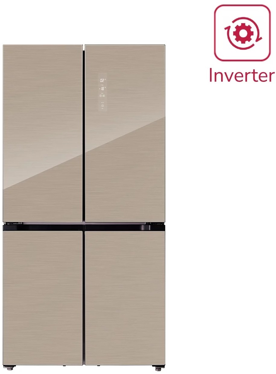 Описаниехолодильник-морозильник Side-by-Side отдельностоящий, 465 л, класс энергопотребления А+,No Frost, 91,1х63,6х183 см, золотистый/стекло