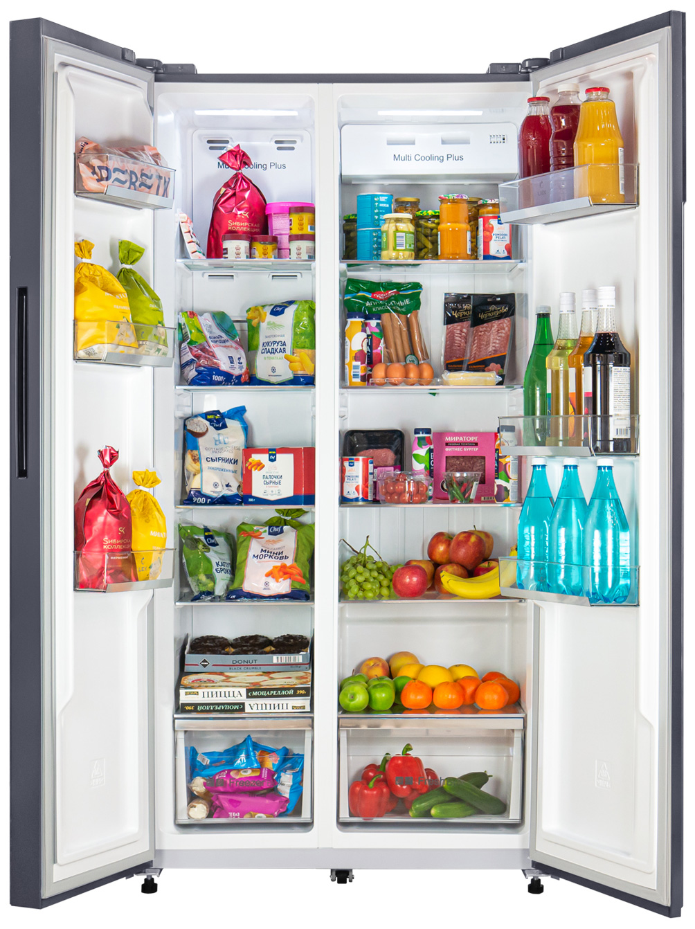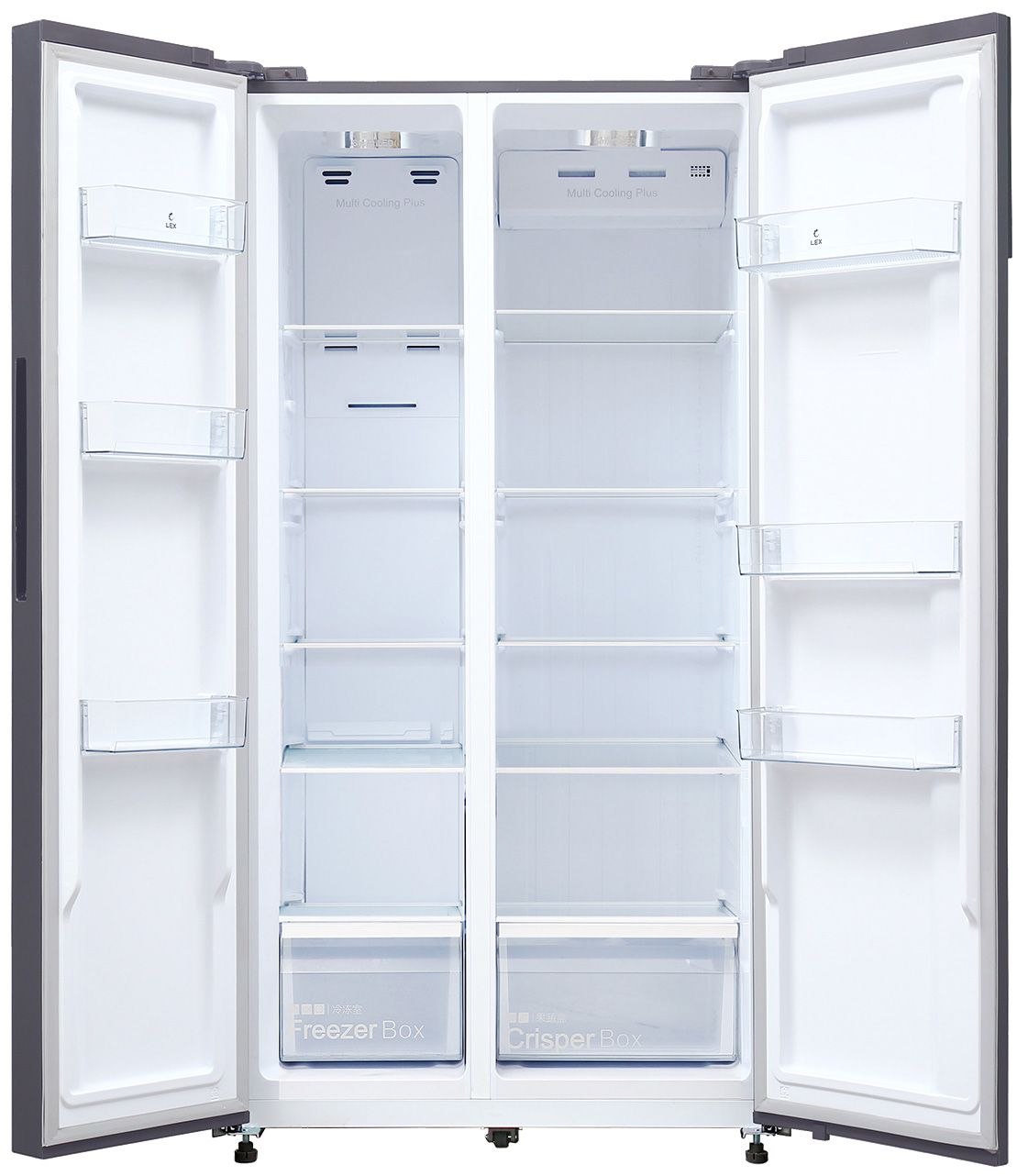 Описаниехолодильник-морозильник Side-by-Side отдельностоящий, 466 л, класс энергопотребления А+,No Frost, 91х60х183,6 см, темно серый металл