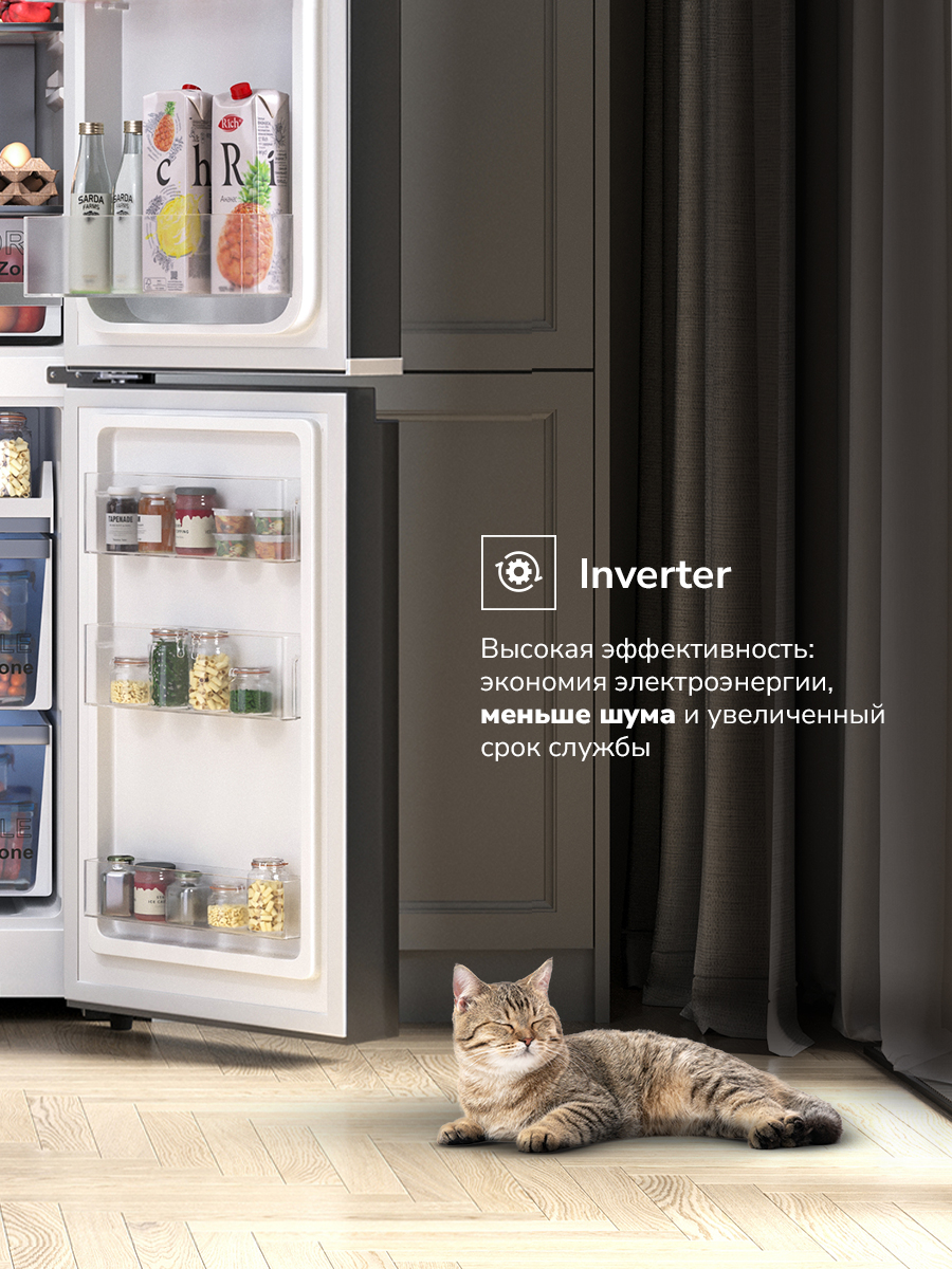 Описаниехолодильник-морозильник Side-by-Side отдельностоящий, 595 л, класс энергопотребления А+, No Frost, 90,5х72х182 см, black diamond