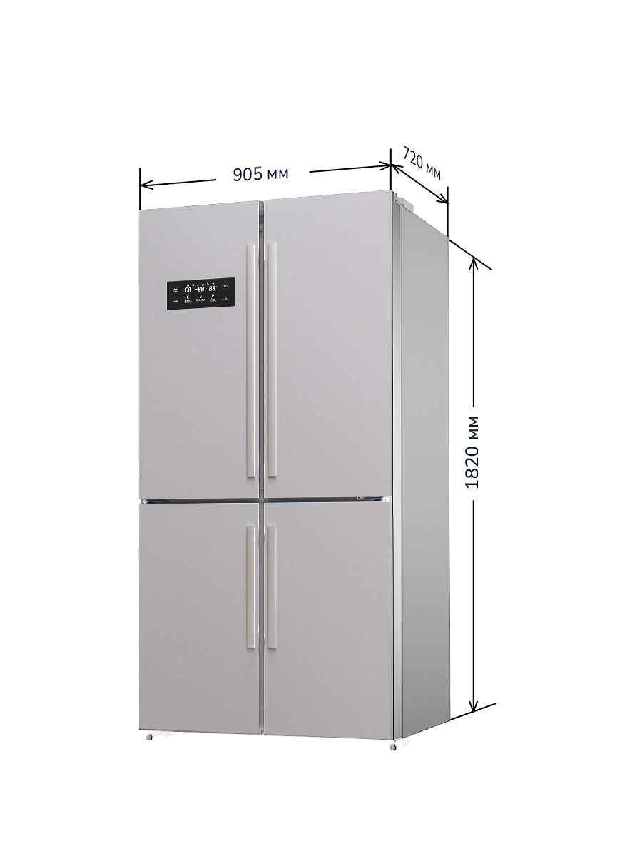 Возможность перевешивания двери нет Количество дверей 4 Количество камер 3 Мощность замораживания до 12 кг/cутки Общий объем 595 л Объем морозильной камеры 105 л Размер (Высота) 182 см Размер (Глубина) 72 см Размер (Ширина) 90,5 см Размораживание морозильной камеры No Frost Тип установки отдельностоящий Цвет сталь Класс энергопотребления класс A+ Ширина прибора 81 - 90 см Высота прибора 181 - 185 см Управление электронное Страна производитель Китай Ссылка на сайт производителя https://millen.shop/shop/refrigerators/holodilniki-cross-door/mcd595xid/?ysclid=lkwi5907tz347268225 Максимальный уровень шума 42 дБ Тип холодильник с морозильником Внутреннее освещение есть Зона свежести есть Объем холодильной камеры 385 л Размораживание холодильной камеры No Frost Расположение морозильной камеры Side by Side Размер в упаковке (Высота) 78 см Размер в упаковке (Ширина) 192 см Размер в упаковке (Глубина) 97 см Размер (Ширина), см 90,5 Размер (Высота), см (Общие) 182 Размер (Глубина), см 72 - Отзывы