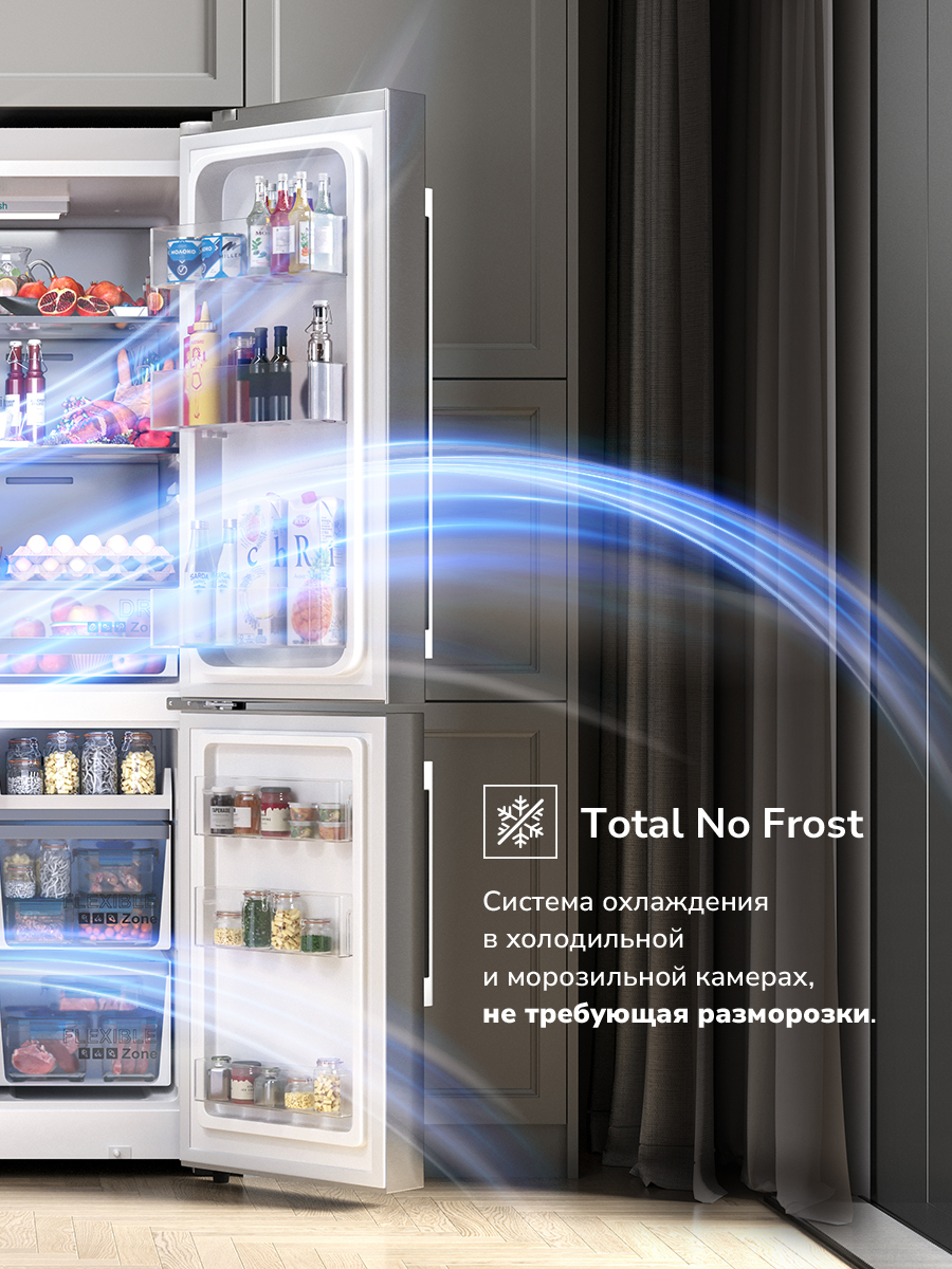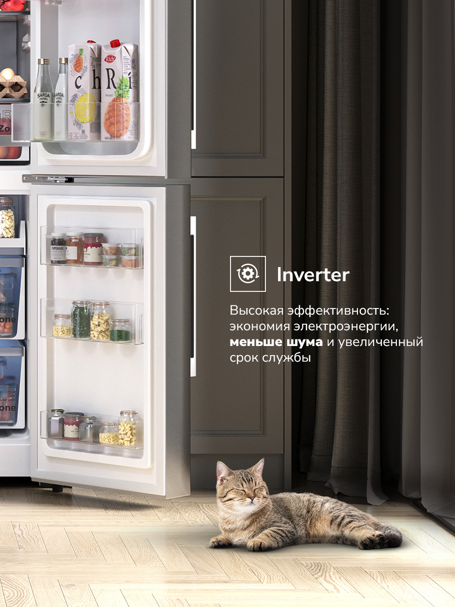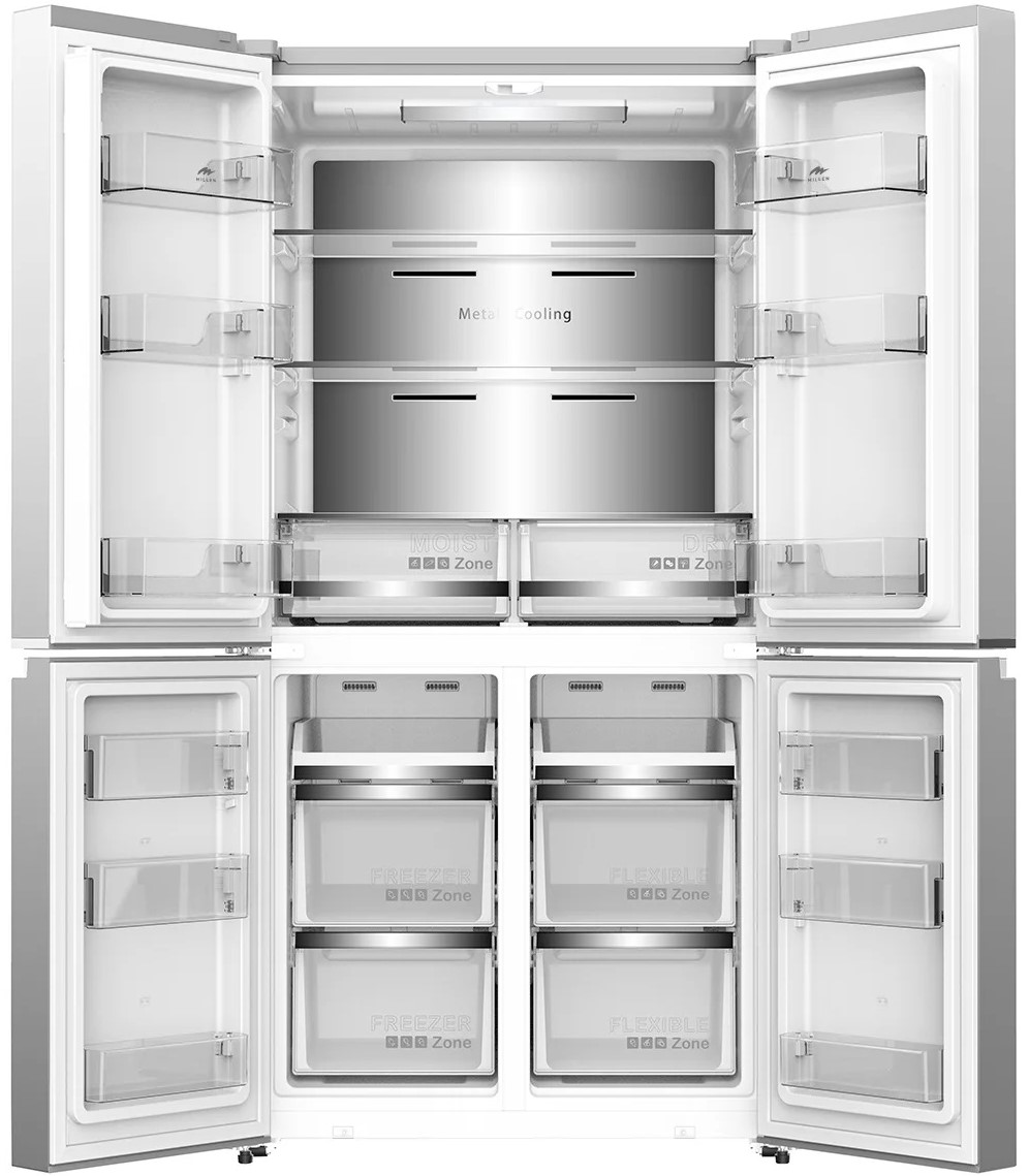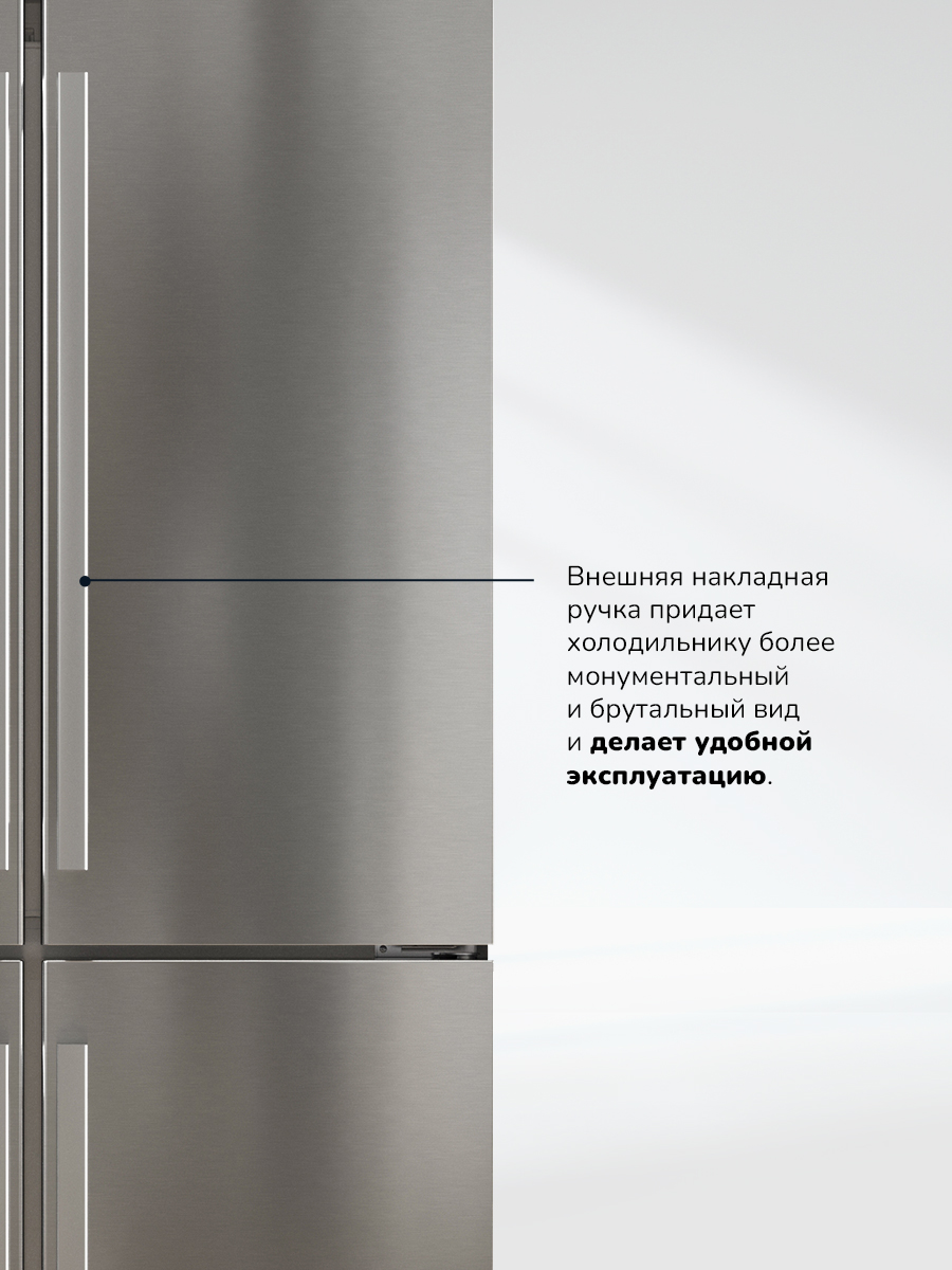 Описаниехолодильник-морозильник Side-by-Side отдельностоящий, 595 л, класс энергопотребления А+, No Frost, 90,5х72х182 см, стальной