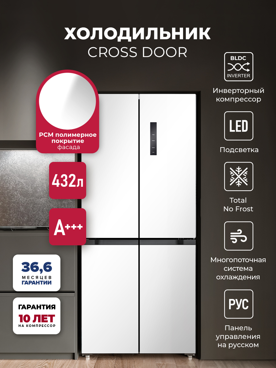 Описаниехолодильник-морозильник Side-by-Side отдельностоящий, 419 л, класс энергопотребления А+, No Frost, 75,9х66,6х183 см, белый