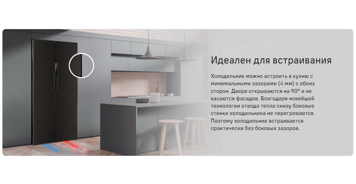 Описаниехолодильник-морозильник Side-by-Side отдельностоящий, 606 л, класс энергопотребления А+, NoFrost, 95,5х63,5х191 см, черная нержавеющая сталь