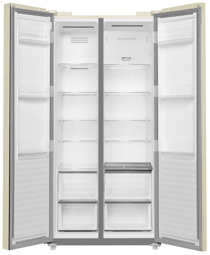Описаниехолодильник-морозильник Side-by-Side отдельностоящий, 606 л, класс энергопотребления А+, NoFrost, 96х63,5х191,2 см, бежевый