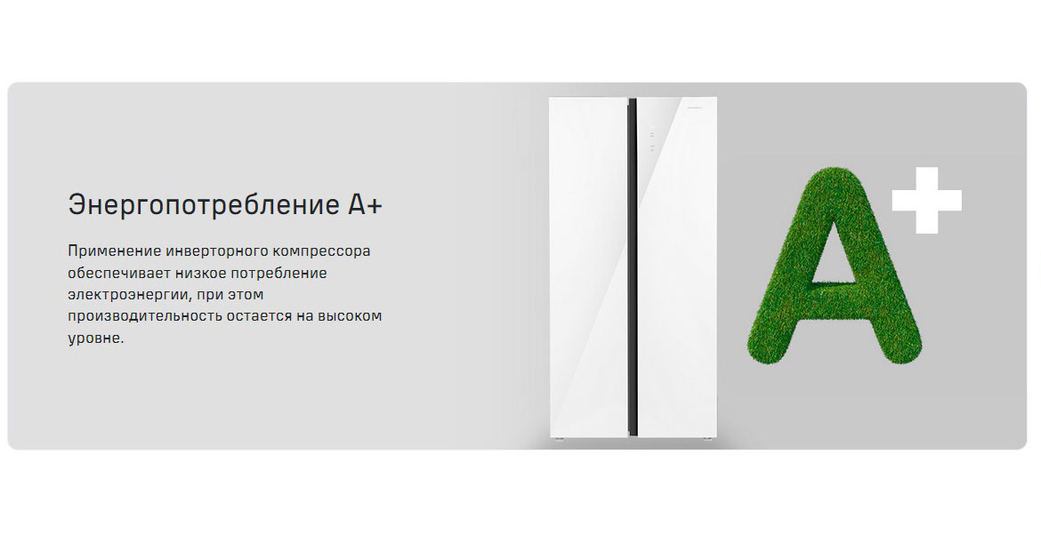 Описаниехолодильник-морозильник Side-by-Side отдельностоящий, 606 л, класс энергопотребления А+, NoFrost, 96х63,5х191,2 см, белый