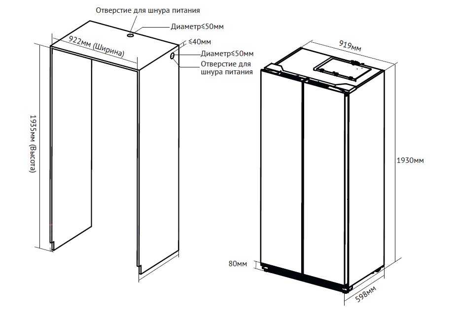 Описаниехолодильник-морозильник Side-by-Side встраиваемый, 503 л, класс энергопотребления А++, No Frost, 91х60х193 см