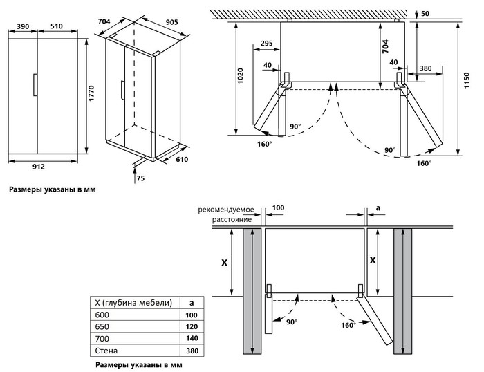 Описаниехолодильник-морозильник Side-by-Side отдельностоящий, 562 л, класс энергопотребления А++, NoFrost, 91,2х70,4х177 см, черный