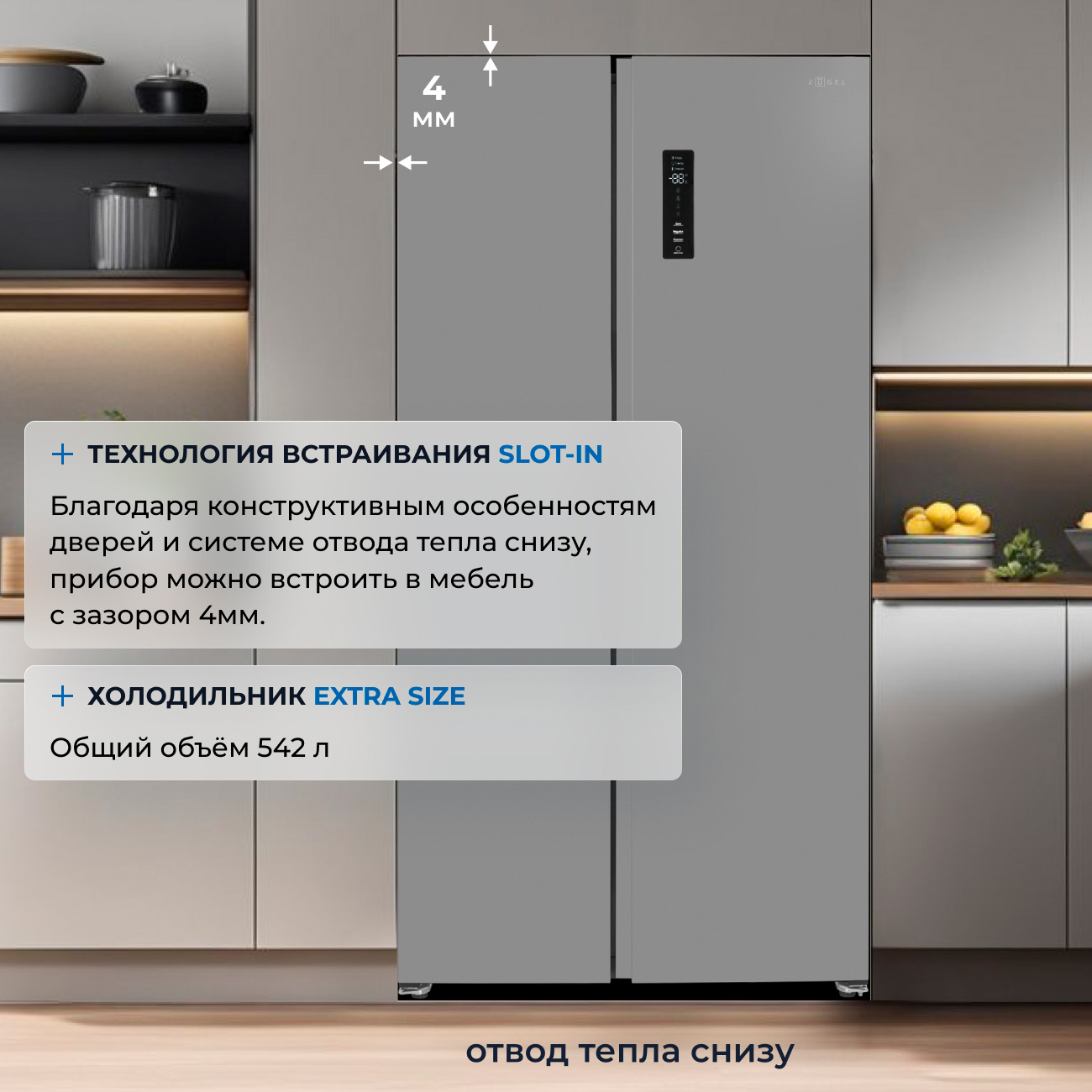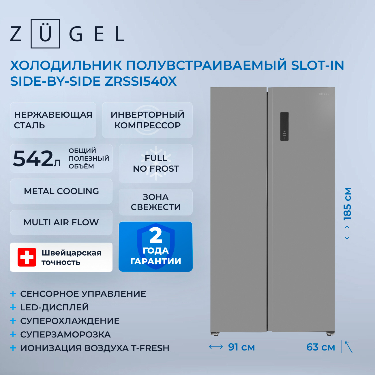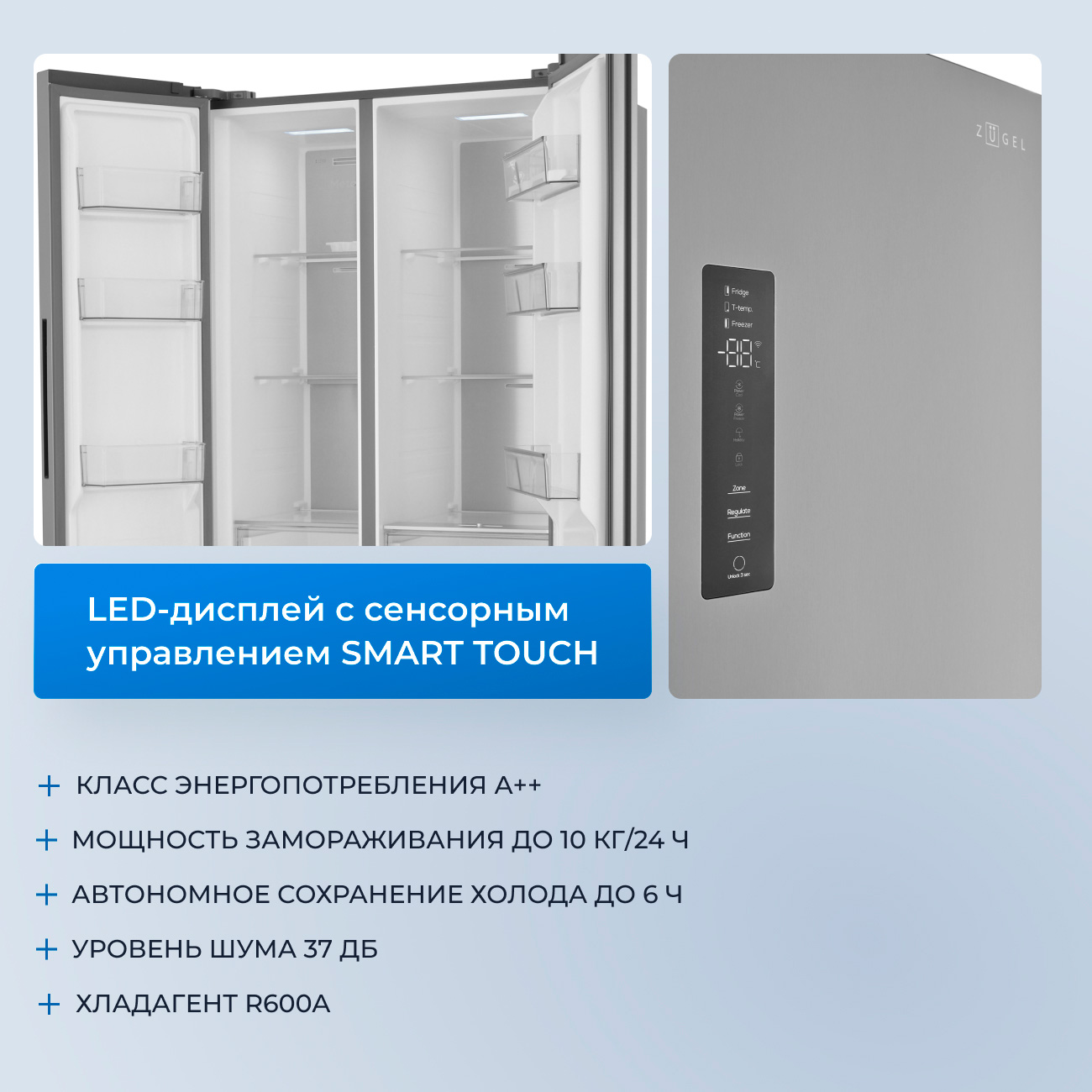 ZUGEL ZRSSI540X Холодильник Side-by-Side отдельностоящий