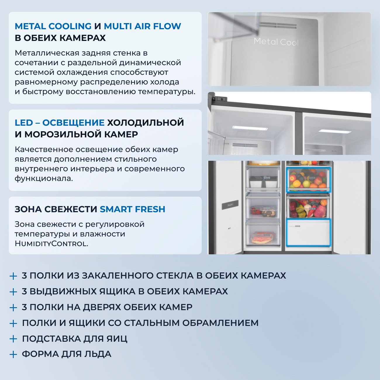 ОписаниеХолодильник Side-by-Side отдельностоящий