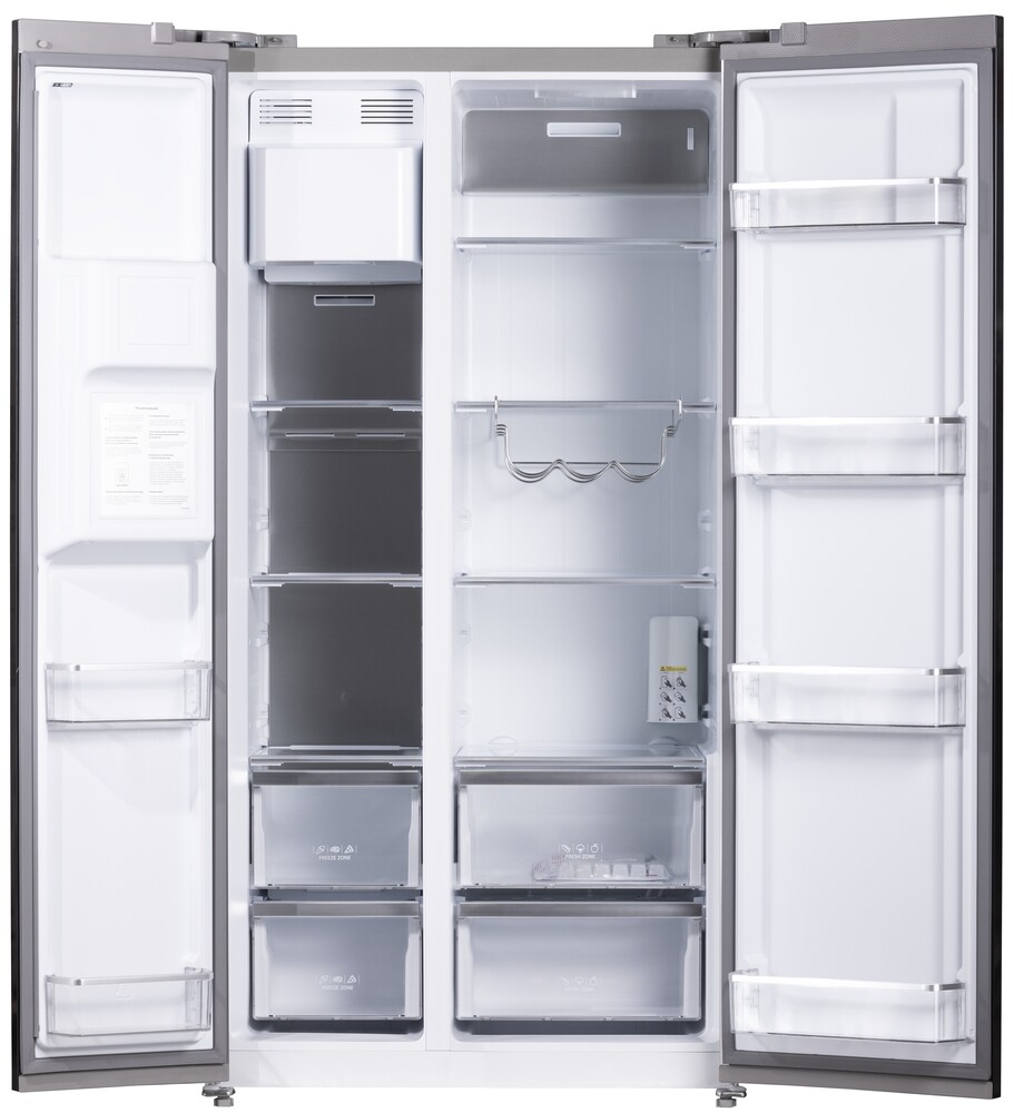 Описаниехолодильник-морозильник Side-by-Side отдельностоящий, 541 л, класс энергопотребления A++, No Frost, 91,1х70,6х178 см, черное стекло