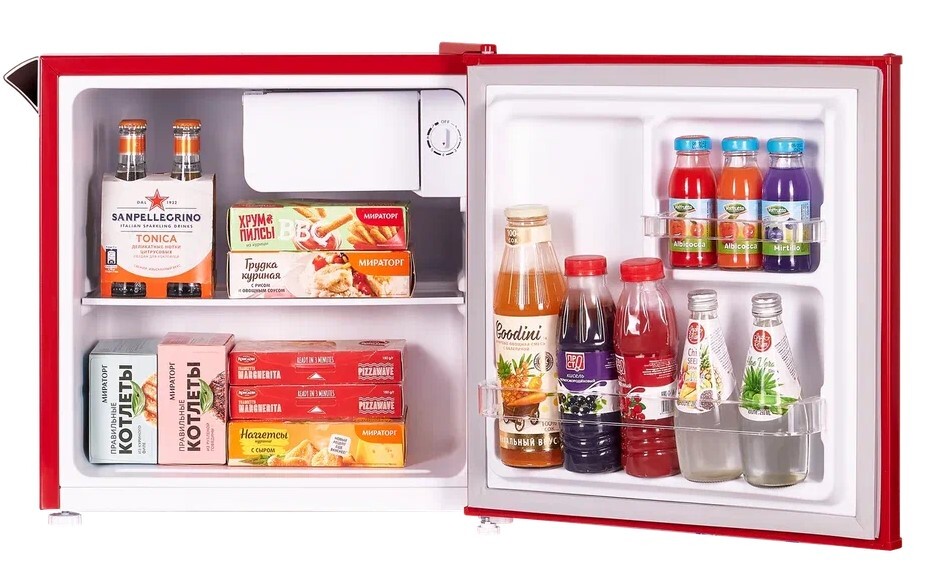 Описаниехолодильник однокамерный отдельностоящий, 46 л, класс энергопотребления А+, ручная система размораживания, 49,5х44,5х49,5 см, красный