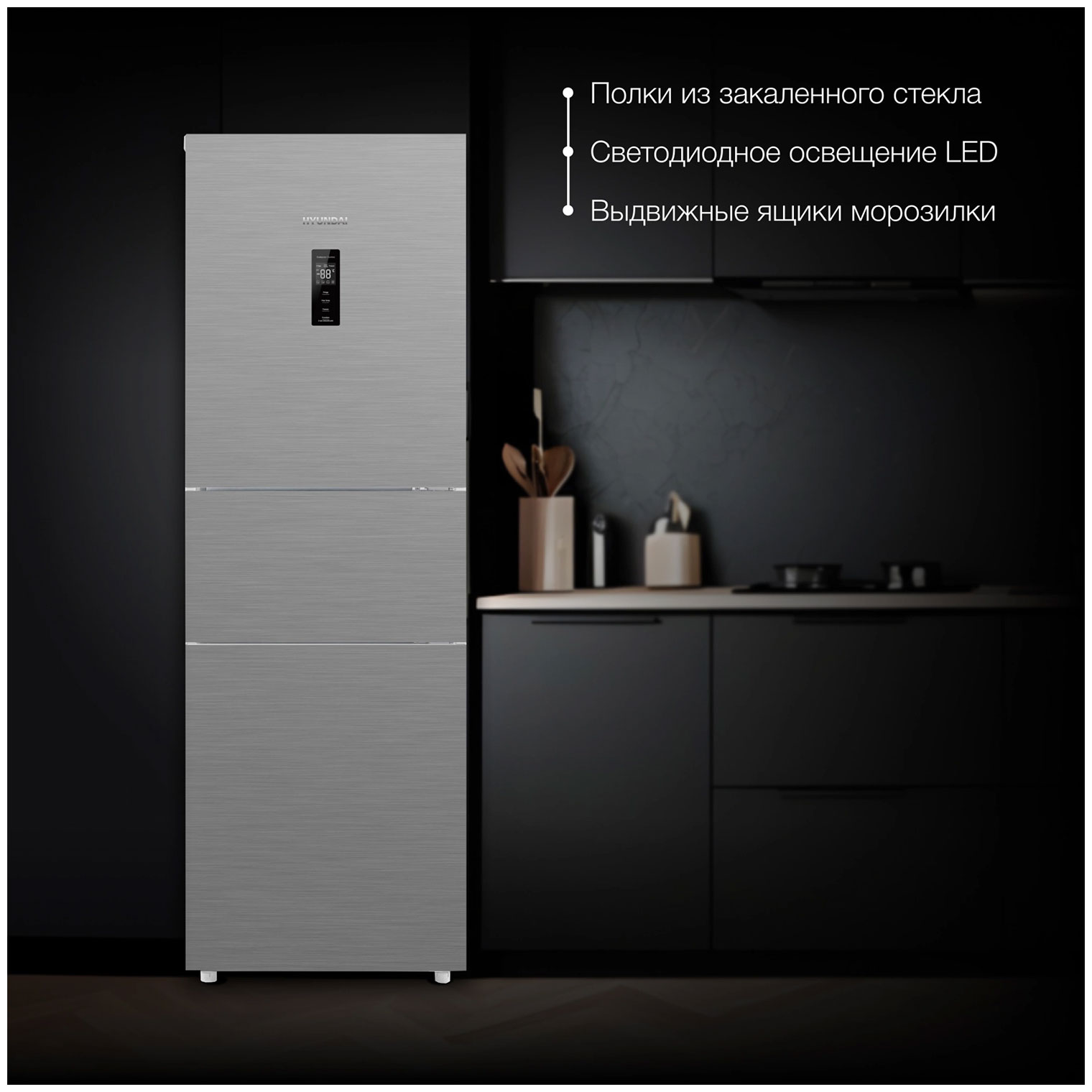 Hyundai CM30073F белое стекло Трехкамерные холодильники отдельностоящие