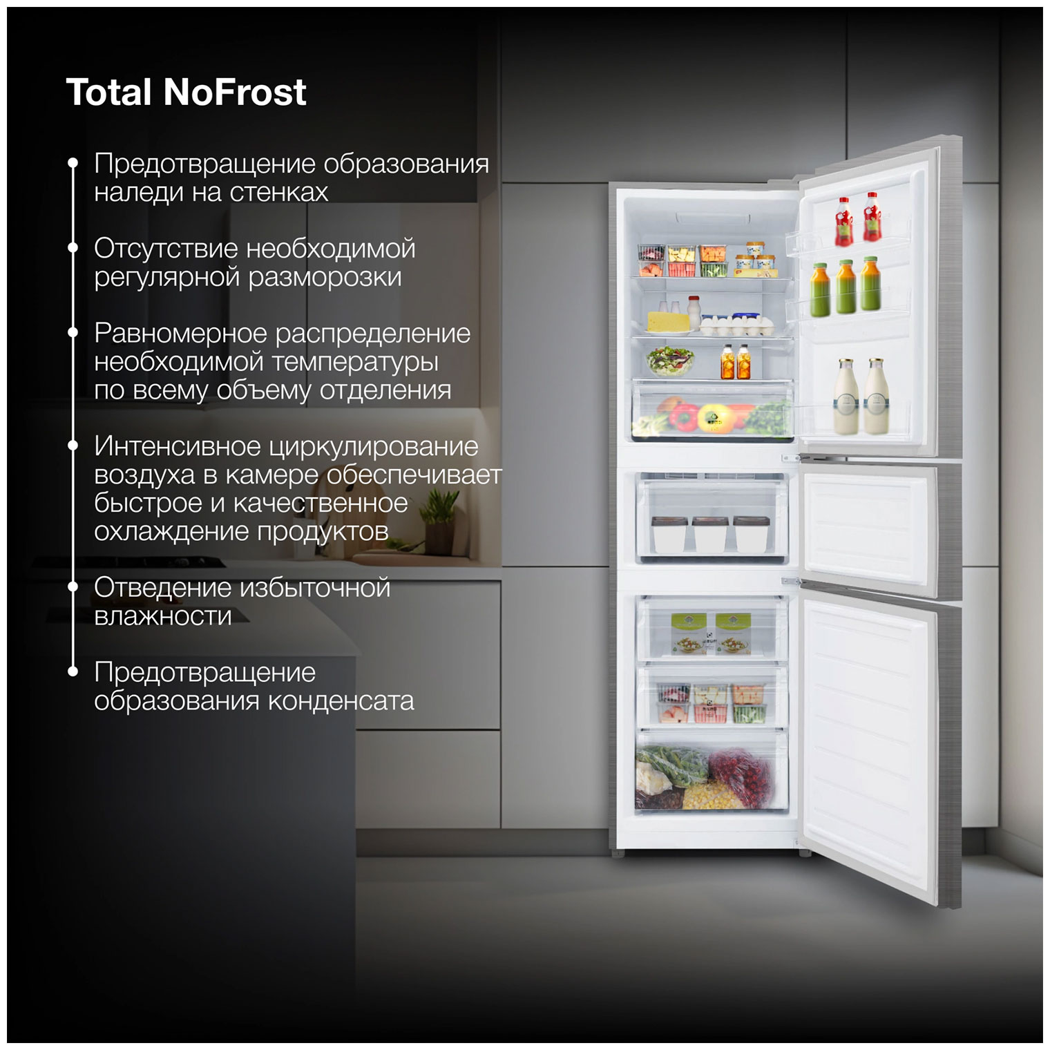 Описаниехолодильник-морозильник трехкамерный отдельностоящий, белое стекло