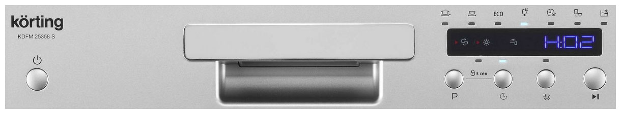 Размер (Высота) 59,5 см Размер (Глубина) 50 см Размер (Ширина) 55 см Тип установки отдельностоящий Цвет серебристый Класс энергопотребления класс A+ Управление электронное Защита от детей есть Гарантийный срок (месяцы) 24 Страна производитель Китай Ссылка на сайт производителя https://korting.ru/catalog/posudomoechnye-mashiny/model-kompaktnaya-posudomoechnaya-mashina-kdfm-25358-s/ Максимальный уровень шума 49 дБ Вместимость 8 комплектов Защита от протечек есть, полная Звуковой сигнал есть Индикатор "Луч на полу" нет Использование средств 3 в 1 нет Количество программ 7 Сушка посуды конденсационная Тип компактная Отложенный старт, ч 1 - 24 Режим половинной загрузки нет Количество корзин 1 Автооткрывание дверцы нет Внутреннее освещение нет INVERTER нет Размер в упаковке (Высота) 65 см Размер в упаковке (Ширина) 60 см Размер в упаковке (Глубина) 56,5 см Вес прибора 24,9 кг - Отзывы