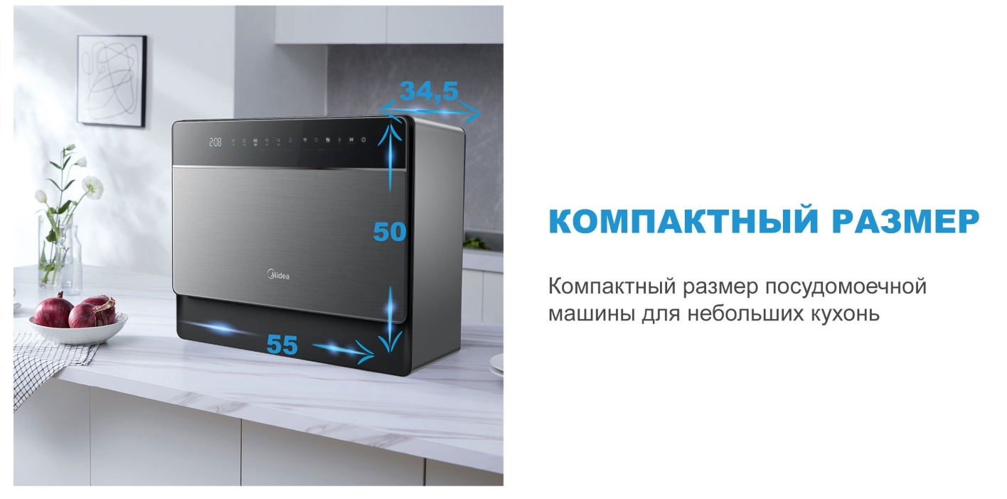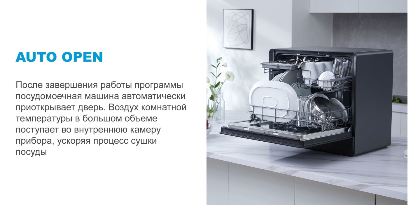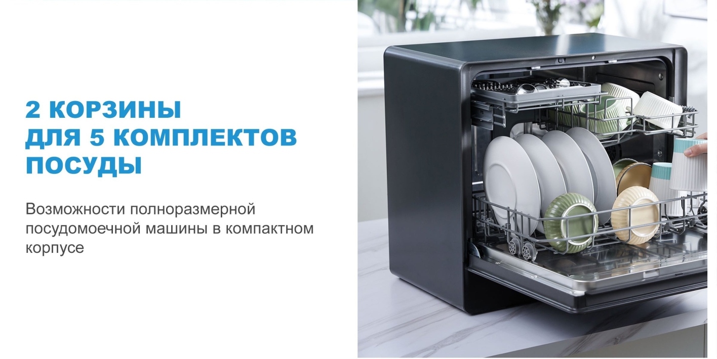 Описаниемашина посудомоечная компактная, 5 комплектов, 55x34,5х50 см, черный