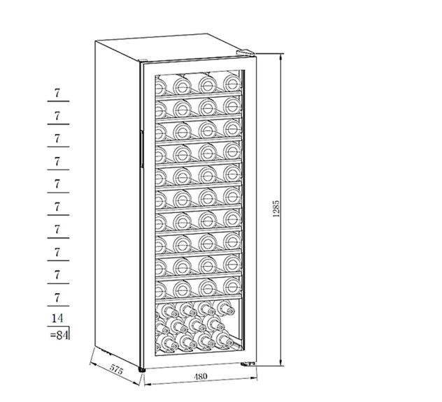 Описаниевинный шкаф отдельностоящий, 201 л, 48х57,5х128,5 см, черный