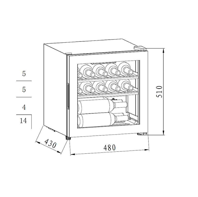 Описаниевинный шкаф отдельностоящий, 40 л, 48х43х51,4 см, черный