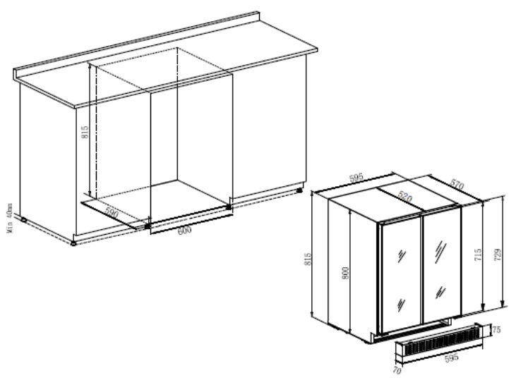 Описаниевинный шкаф отдельностоящий, 116 л, 59,5х57х81,5 см, черный