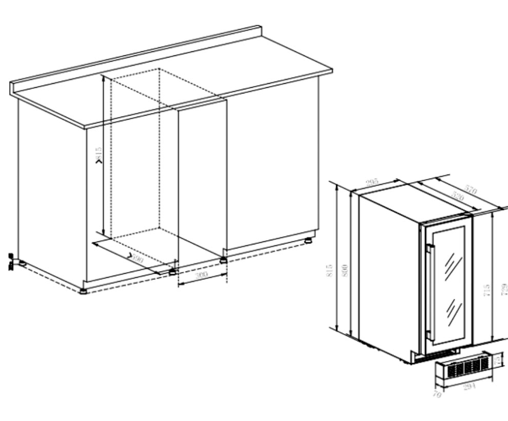 Описаниевинный шкаф отдельностоящий, 54 л, 29,5х57х81,5 см, нержавеющая сталь