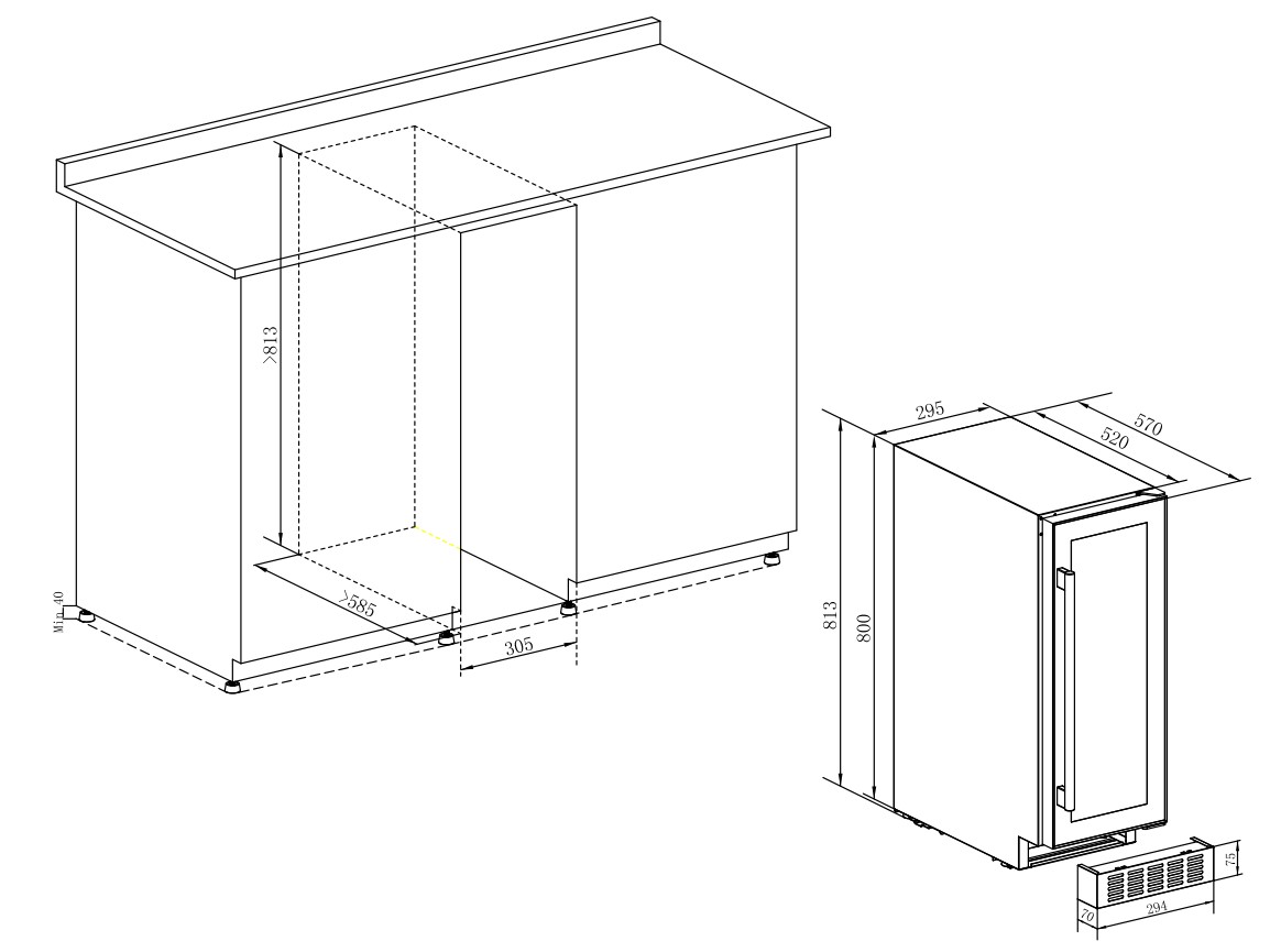 Описаниевинный шкаф отдельностоящий, 54 л, 59,5х68х121,5 см, черный