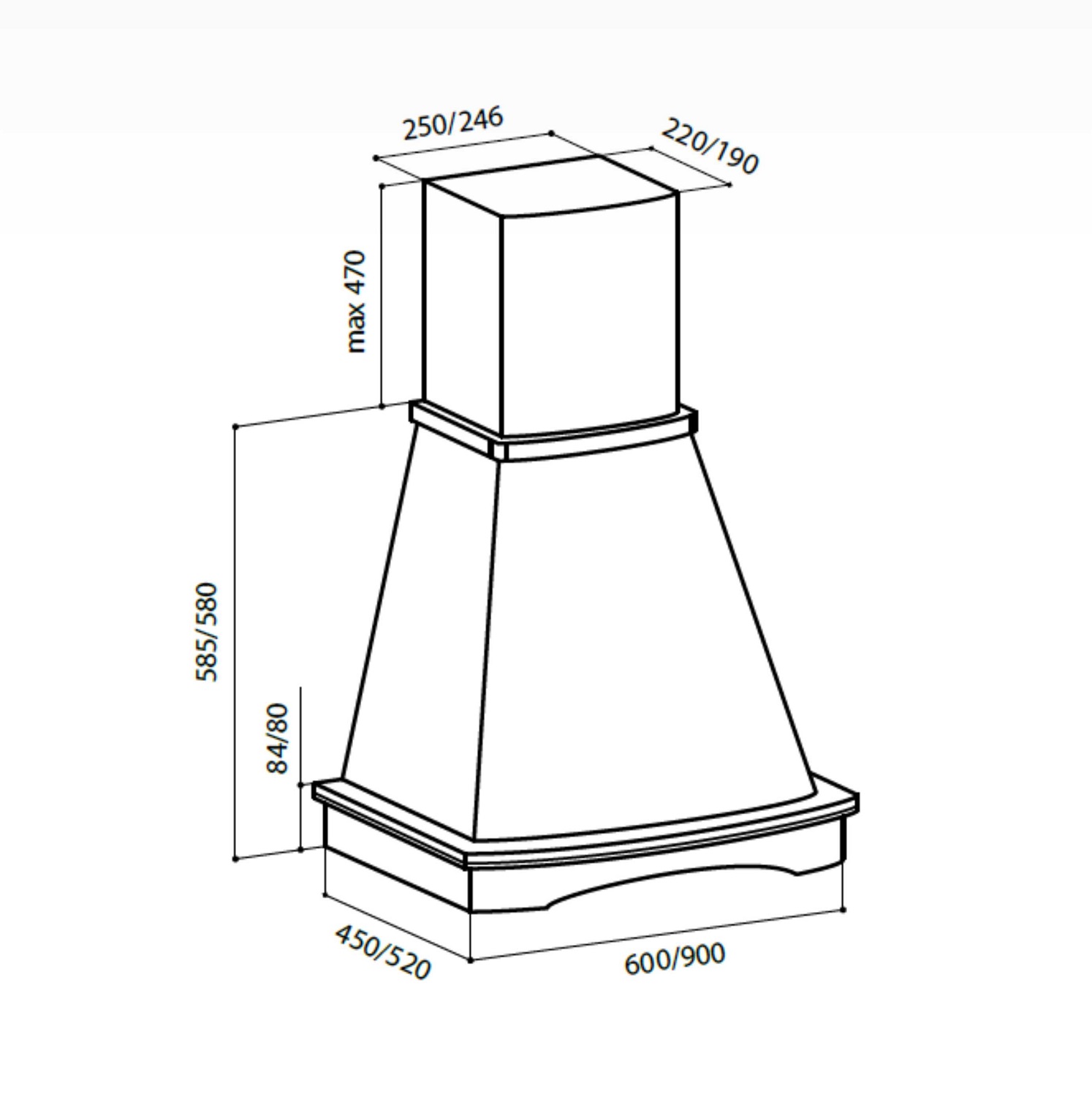 Описаниевытяжка классическая, 60 см, 650 м3/ч, слоновая кость
