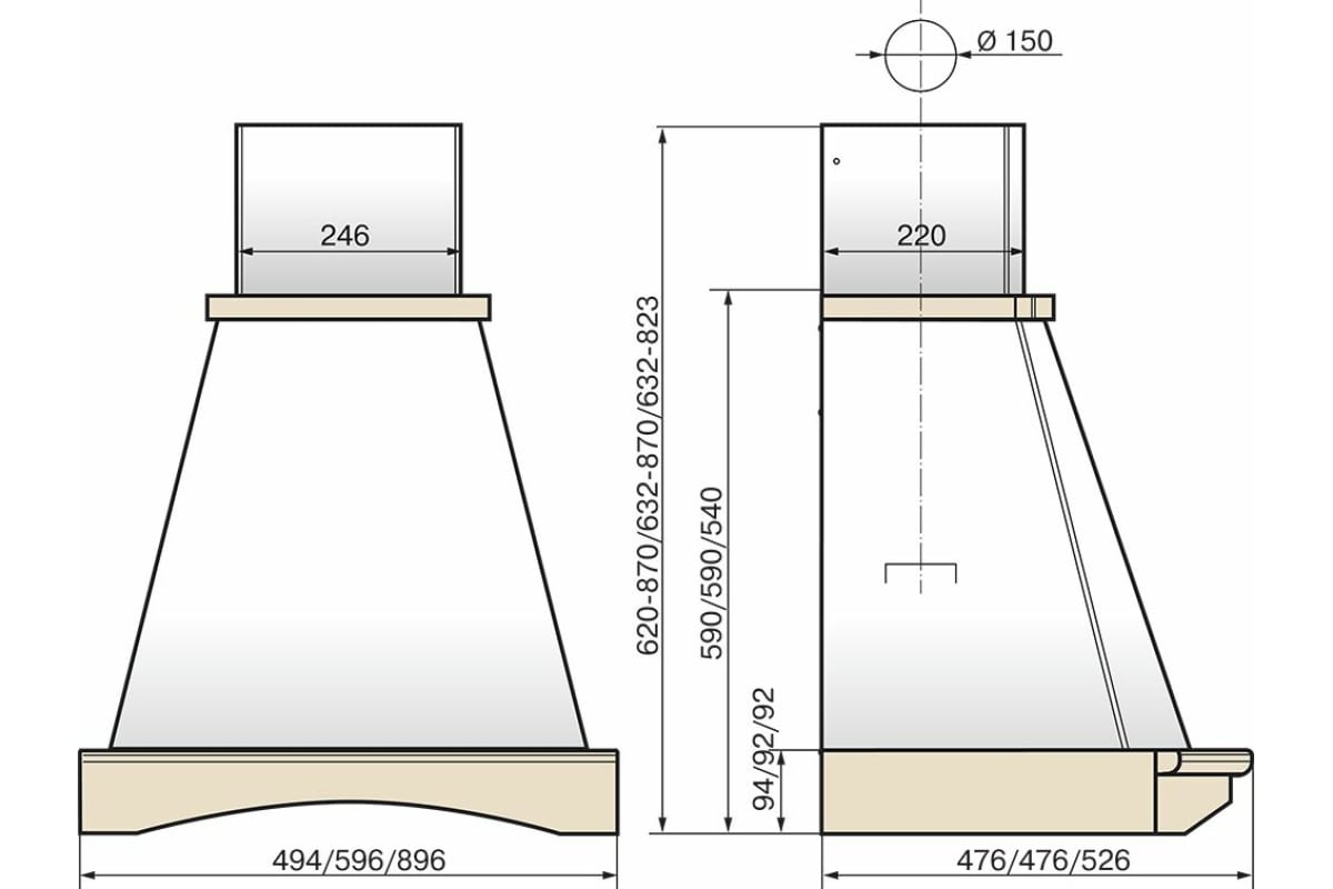 Описаниевытяжка классическая, 90 см, 1000 м3/ч, бежевый/дуб неокрашенный