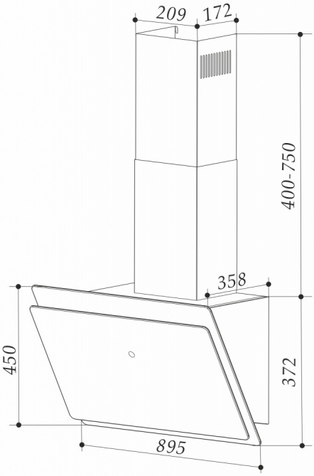 Описаниевытяжка наклонная, 90 см, 1000 м3/ч, черное стекло