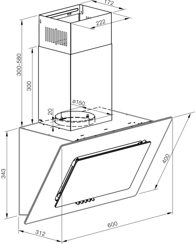 Описаниевытяжка наклонная , 60 см, 650 м3/ч, кремовый