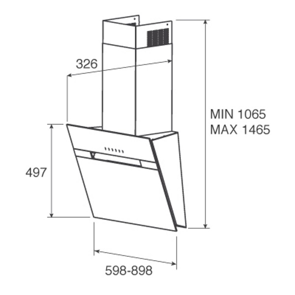 Описаниевытяжка наклонная, 90 см, 800 м3/ч, белый